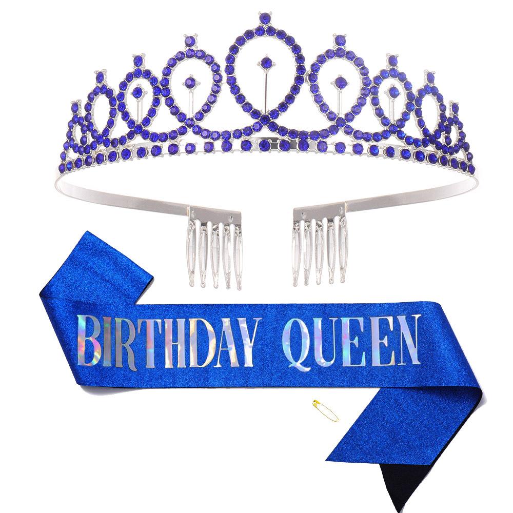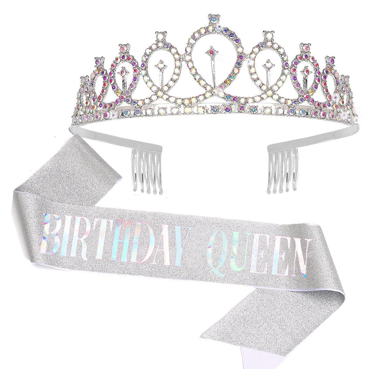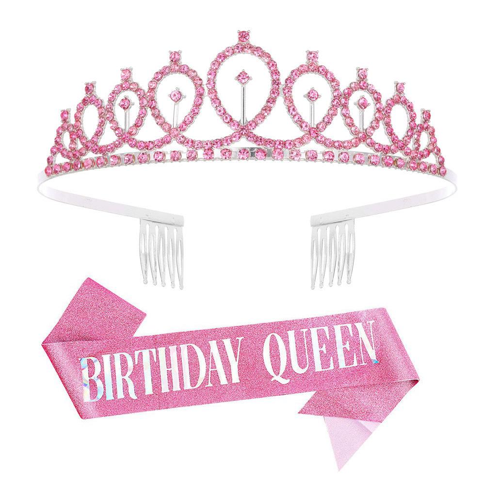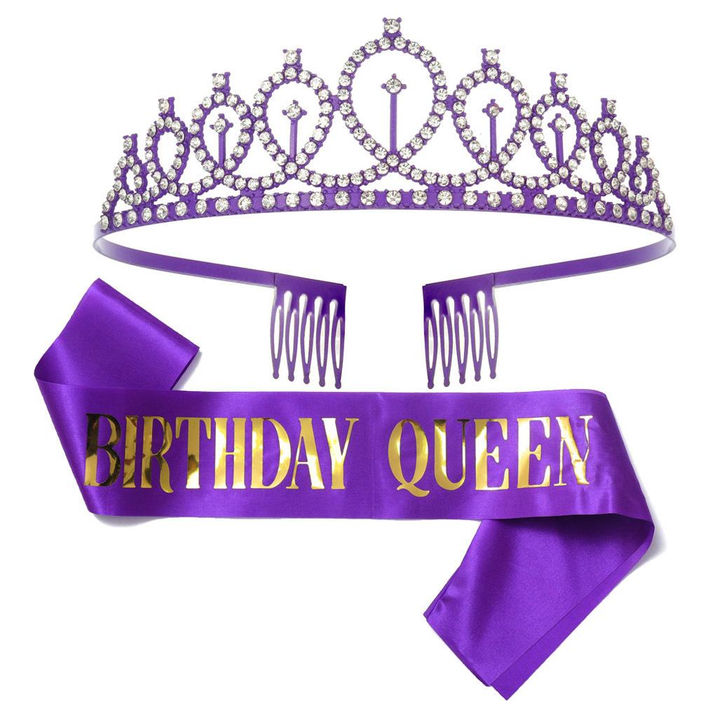 Jóias de aniversário Coroa brilhante Menina Strass Faixa de cabelo Cinto Rainha Etiqueta Cinto Decoração de aniversário Artigos para festa