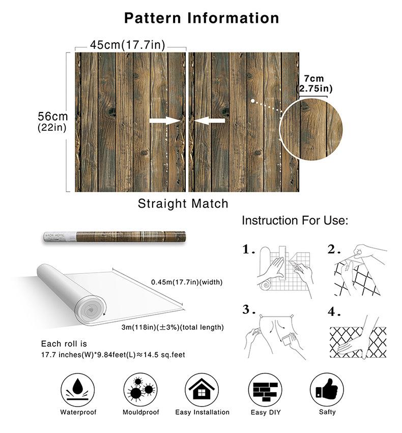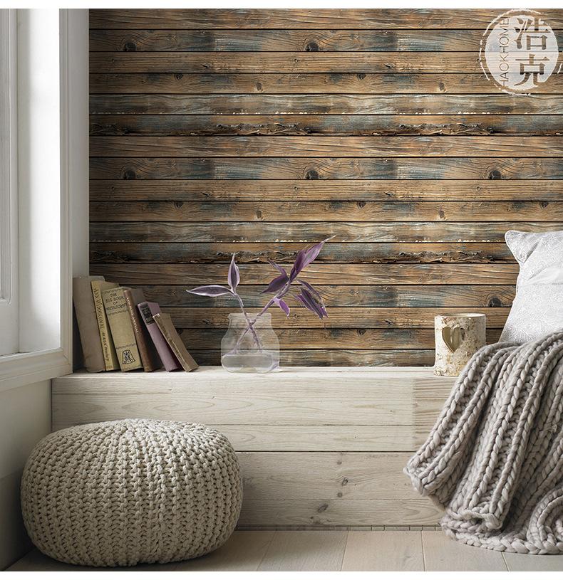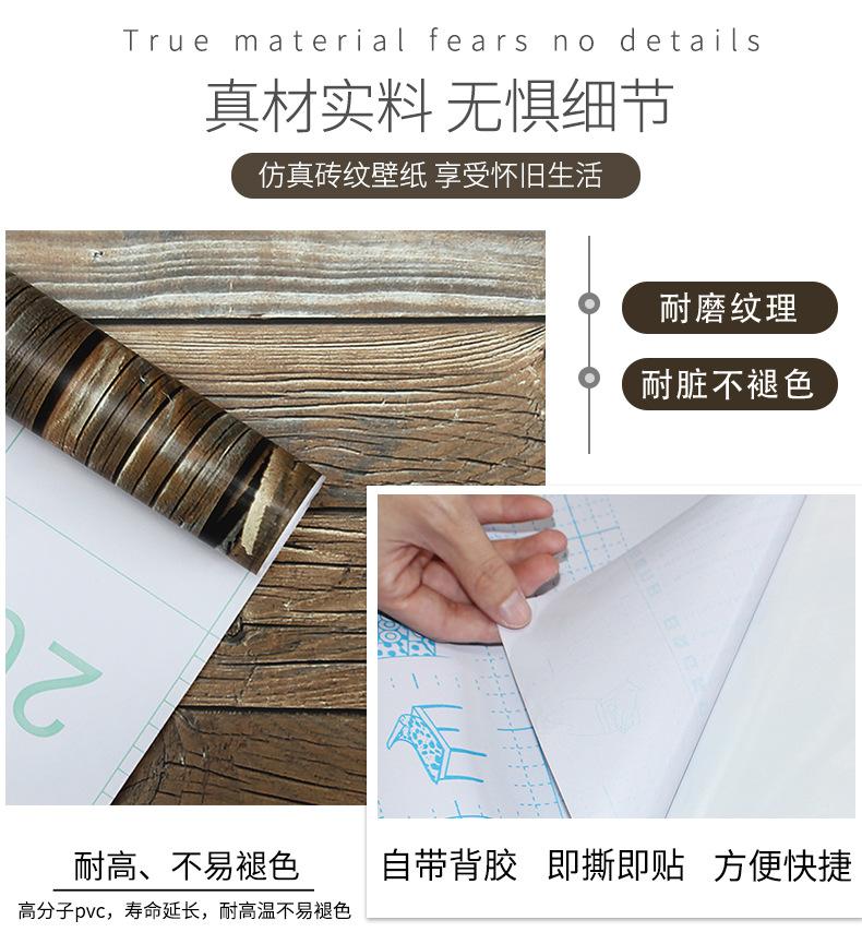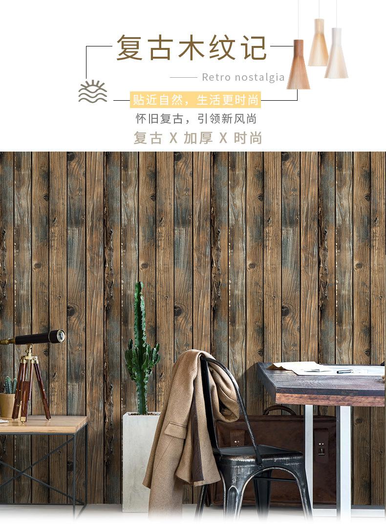Simulação 3D retrô espessada Adesivos de grãos de madeira PVC autoadesivos adesivos de parede de imitação de madeira papel de parede de fundo de restaurante