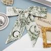 Longo all-match lenço de seda gravata faixa de cabelo Arco 26 letras floral fita tie saco mão presente pequeno lenço de seda fita