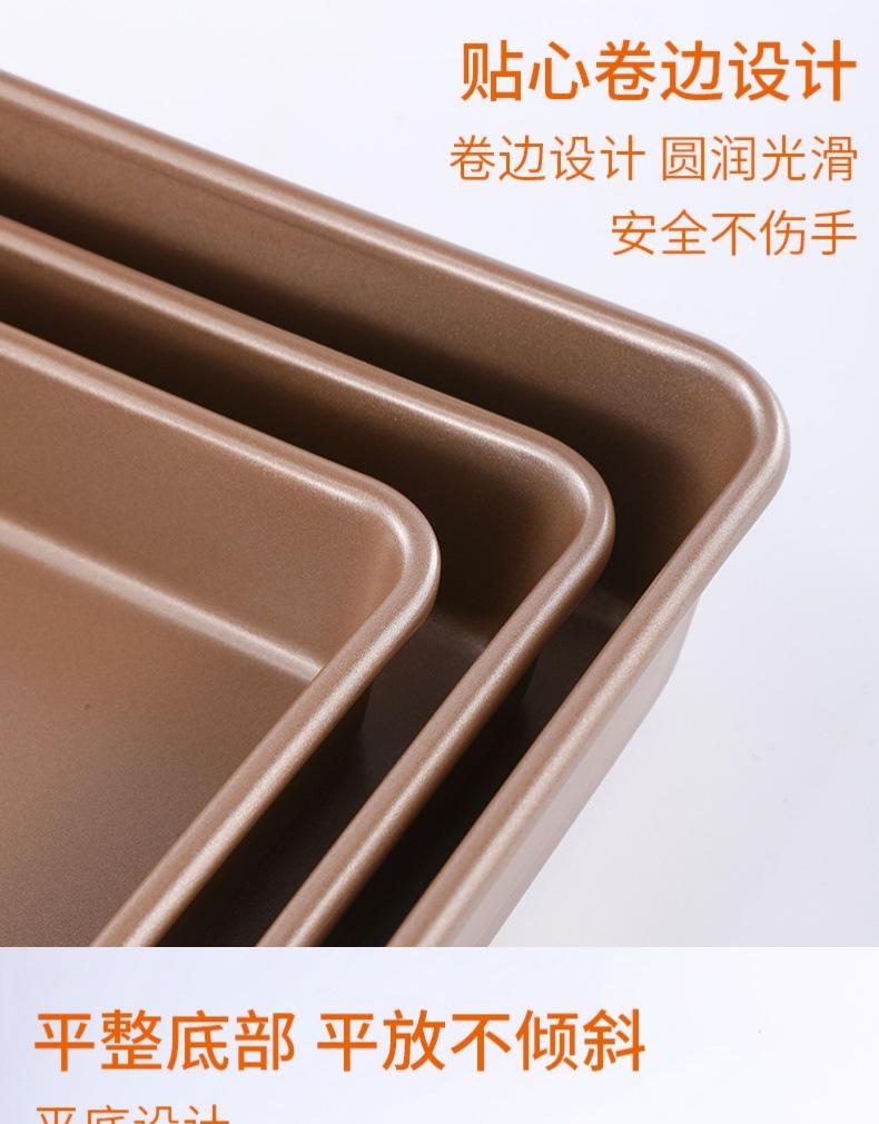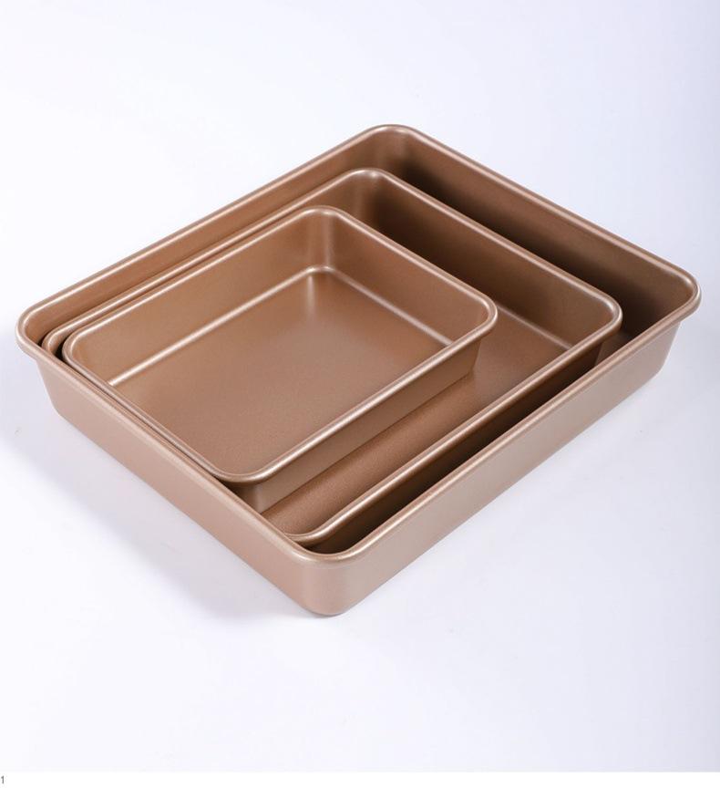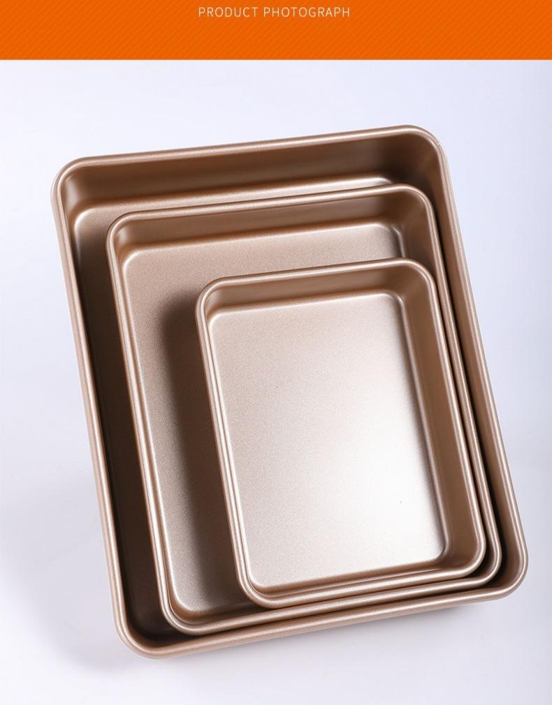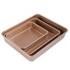 Assadeira Dourada de Aço Carbono Utensílios de Forno Domésticos Retangular Antiaderente Forma de Assar Bolo Bandeja Prato Quadrado para Pão