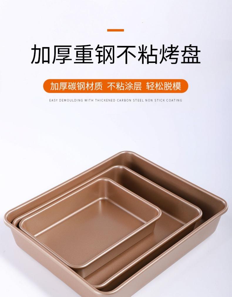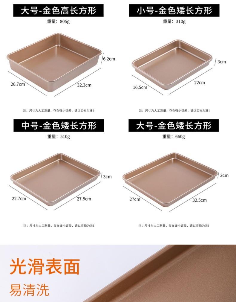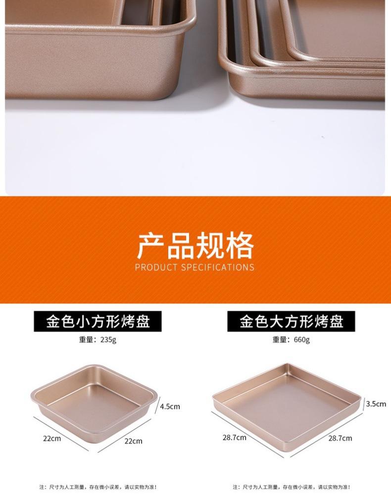 Large-Thickened Gold Deep Bakeware 32.3*26.7*6.2, Thickened golden small square baking pan 22*22*4.5, small si...