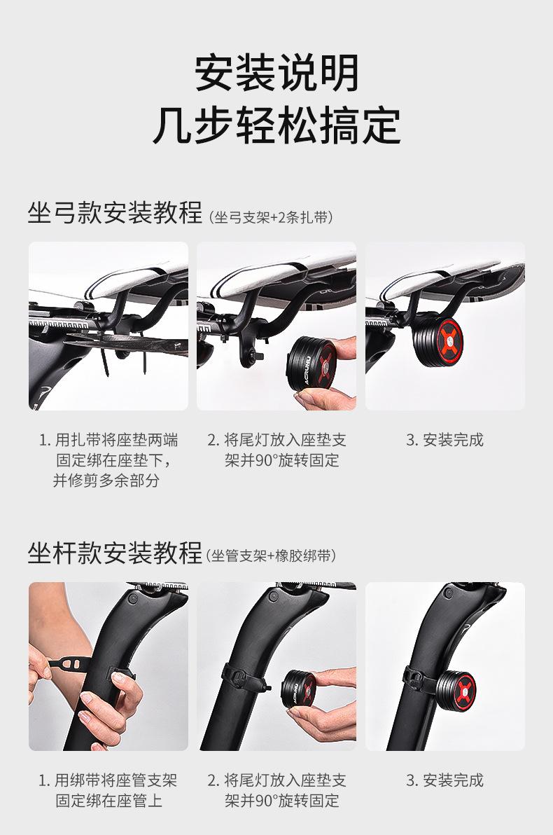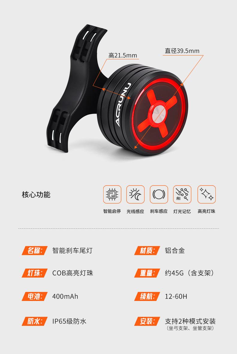 ACRUNU bicicleta liga de alumínio luz traseira mountain road car luz de freio de indução inteligente bicicleta luz de advertência de equitação noturna