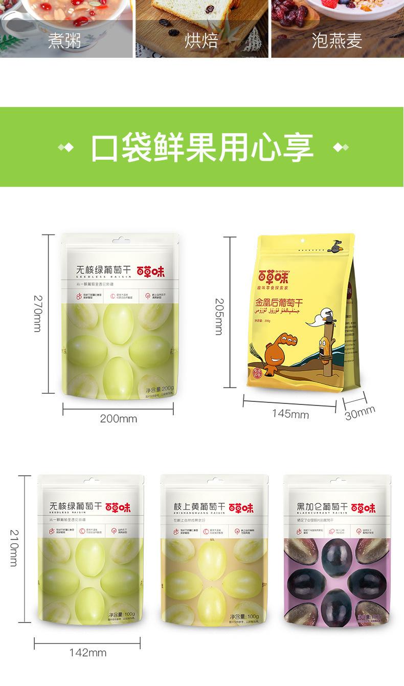 Passas Brancas e Verdes Sem Sementes Baicaowei 100g Fruta Especialidade de Xinjiang Casual de Escritório Frutas Secas Tamanho da Caixa 90 Sacos
