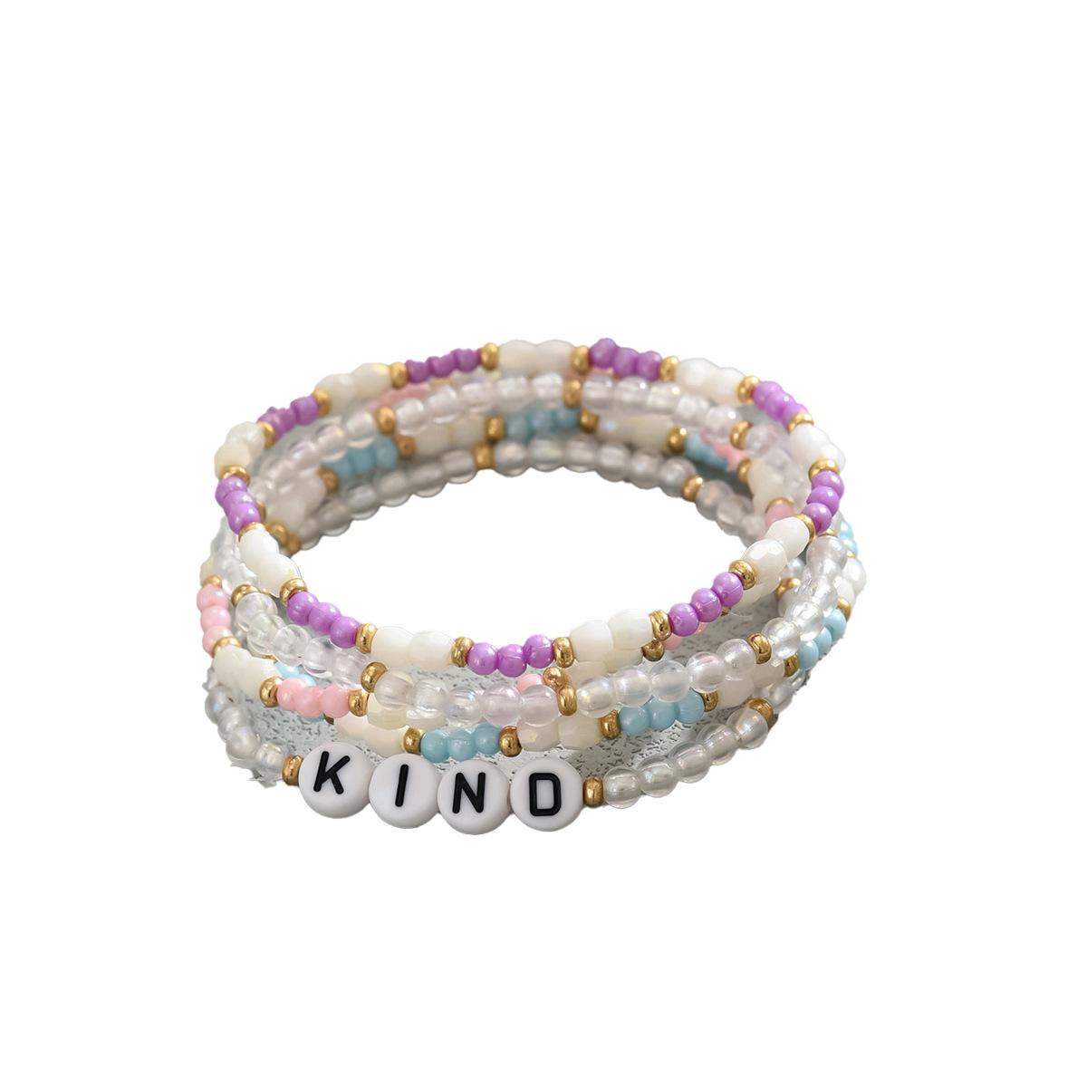 Pulseira Simples de Moda OL com Contas Feminina Nicho Multicamadas Design de Contas Coloridas Pulseira com Letra Inglesa Pulseira Versátil