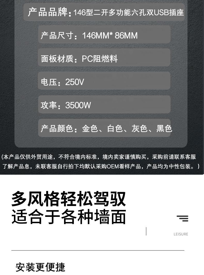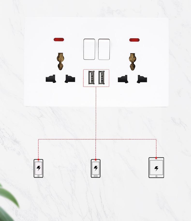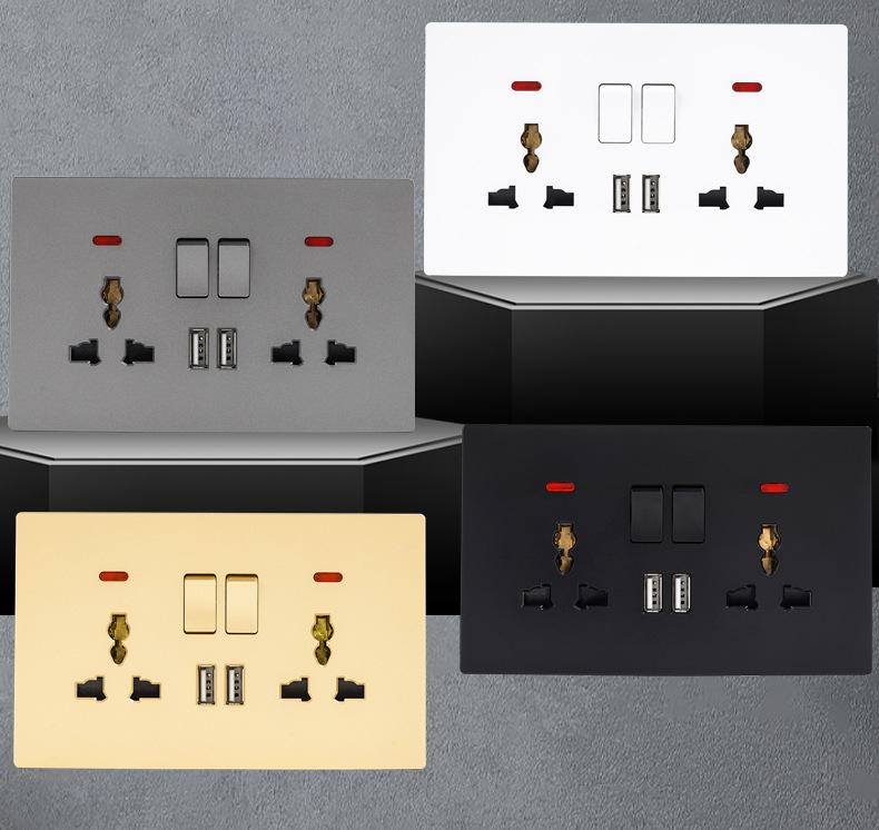Gray British standard dual multi-three-hole USB, White British standard dual multi-three-hole USB, Gold Britis...