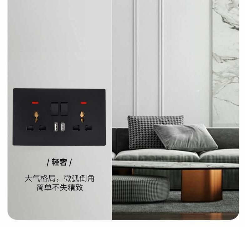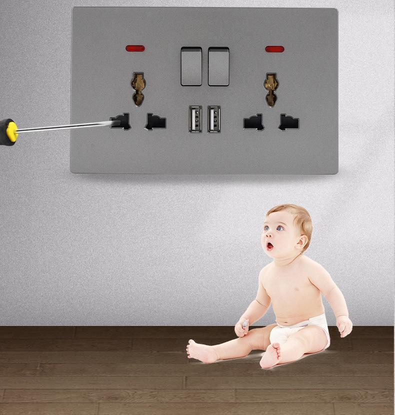 Painel Interruptor Tomada Padrão Britânico Multifuncional com Luz USB Britânico Embutido 146 Tomada de Parede 16A Três Furos