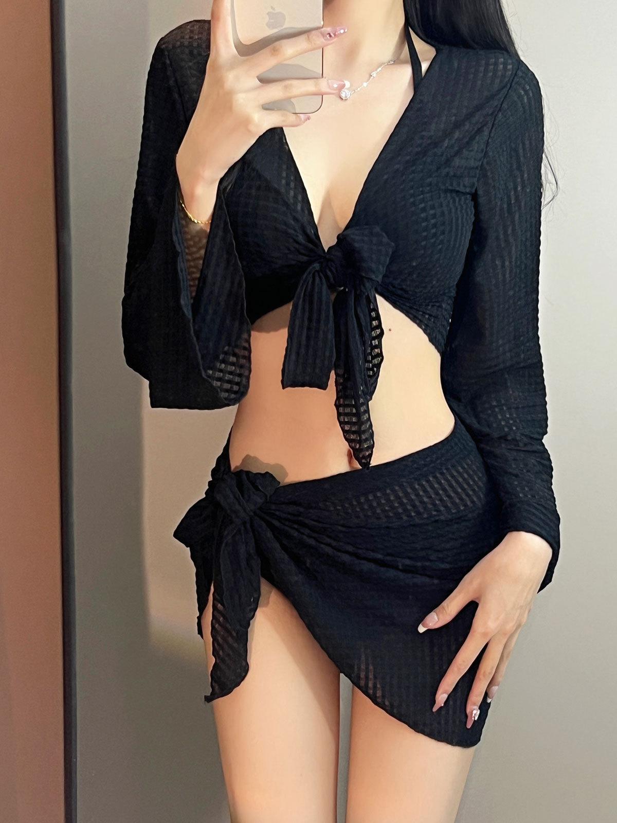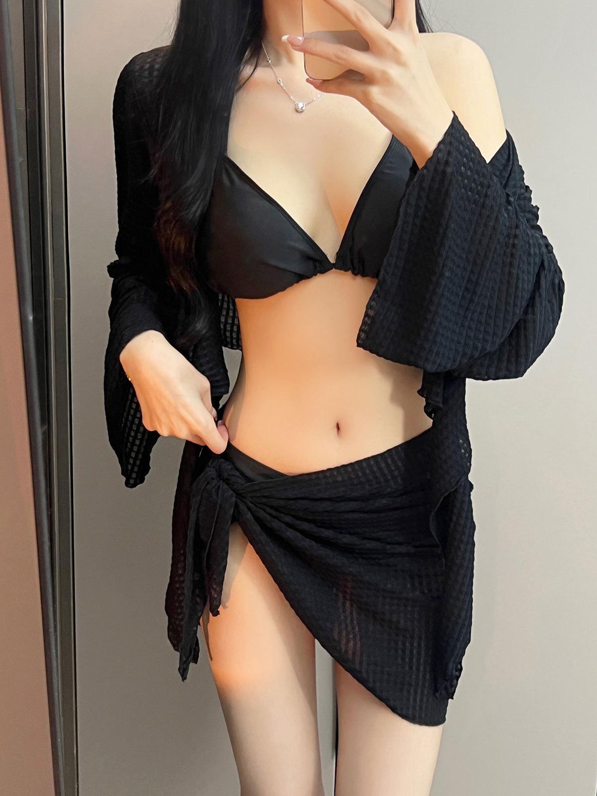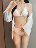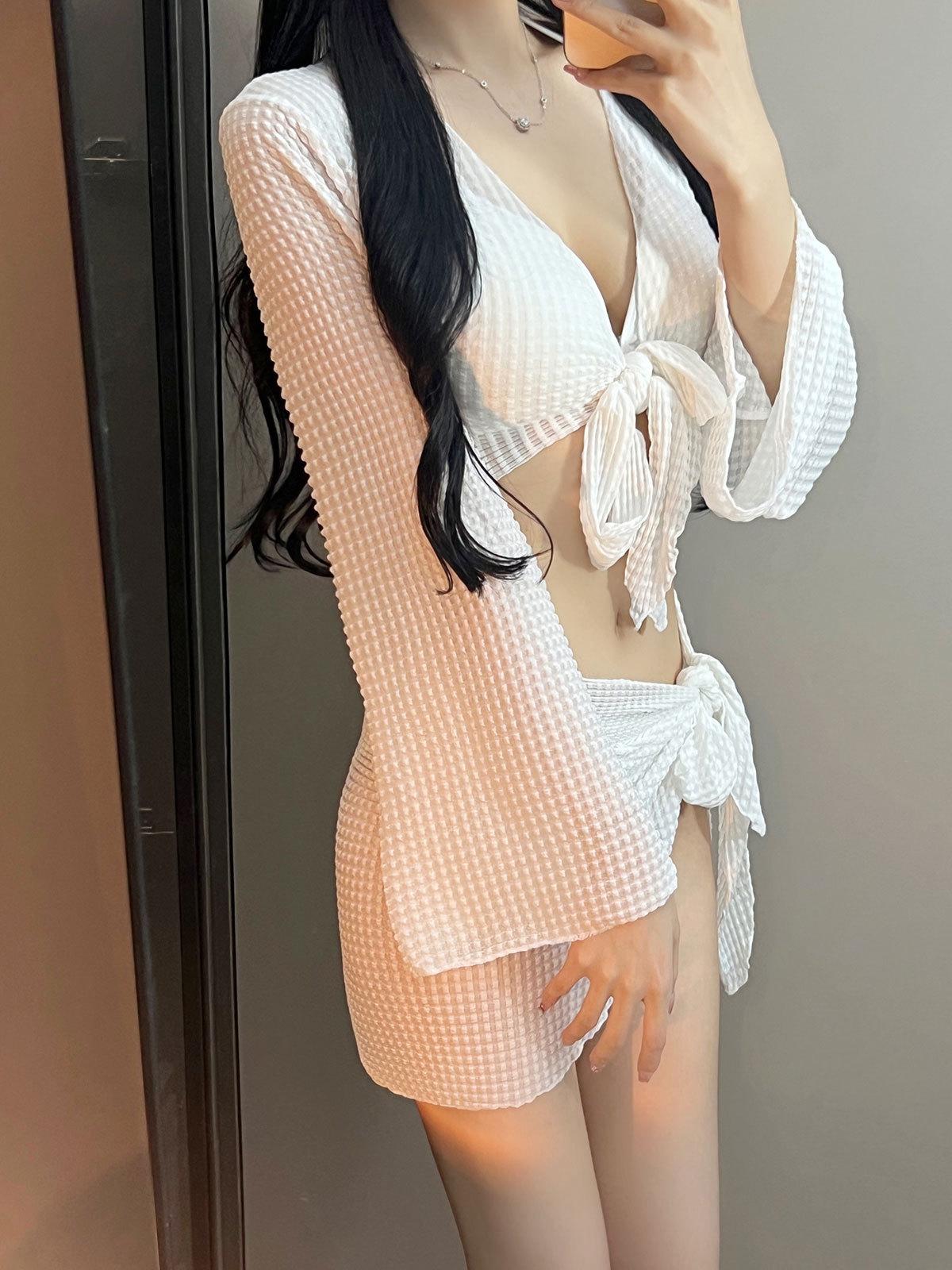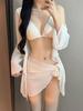 Maiô de biquíni feminino 2024 novo conjunto de quatro peças branco sexy saia na moda maiô dividido sanya férias hot spring