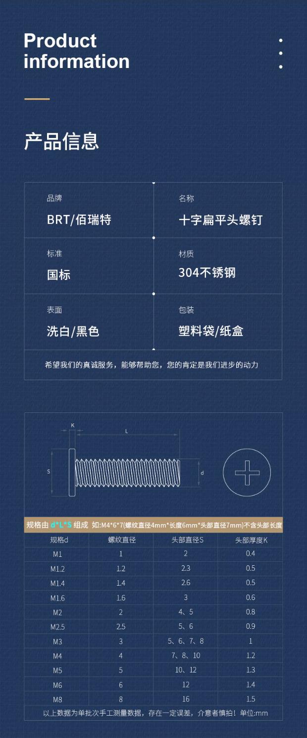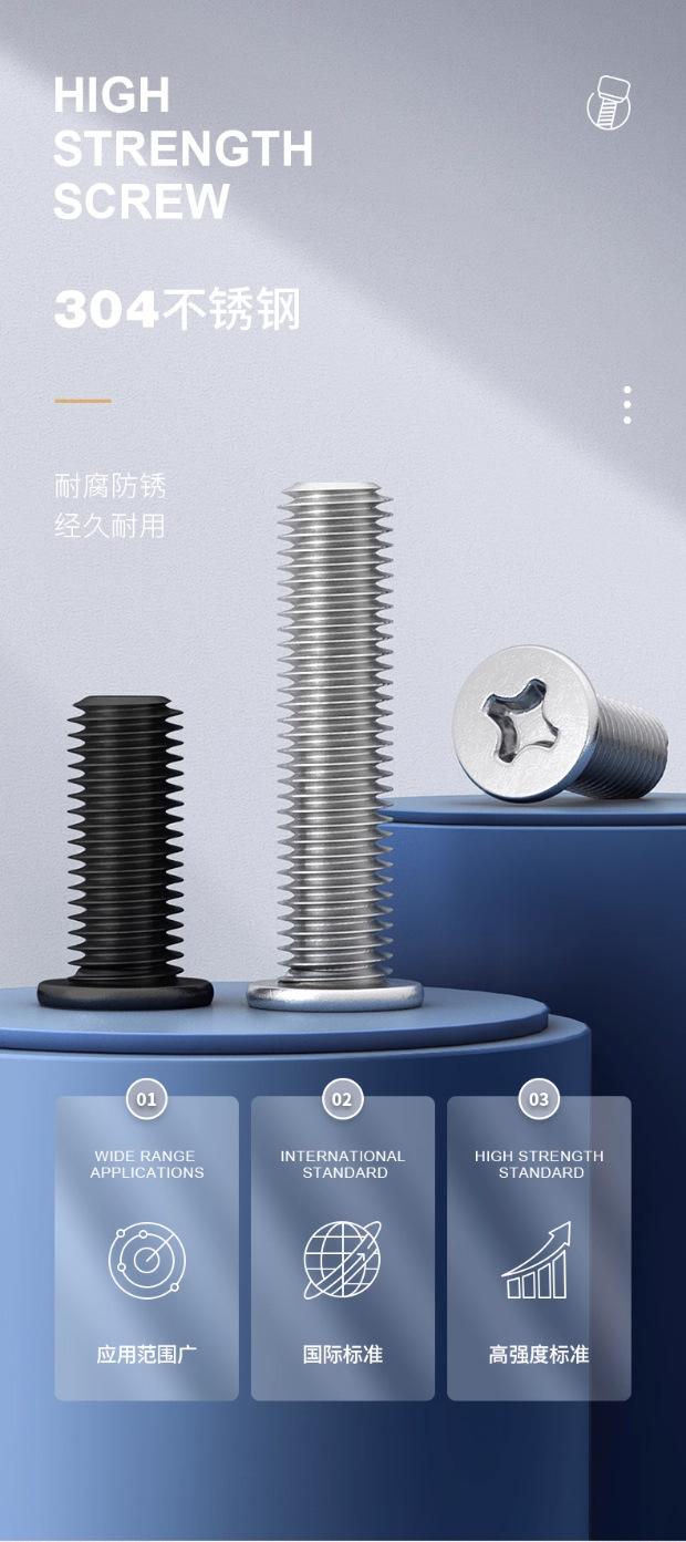 Parafuso de cabeça chata Phillips de aço inoxidável 304 parafuso de cabeça redonda plana CM parafuso de computador M2M2.5M3M4M5M6