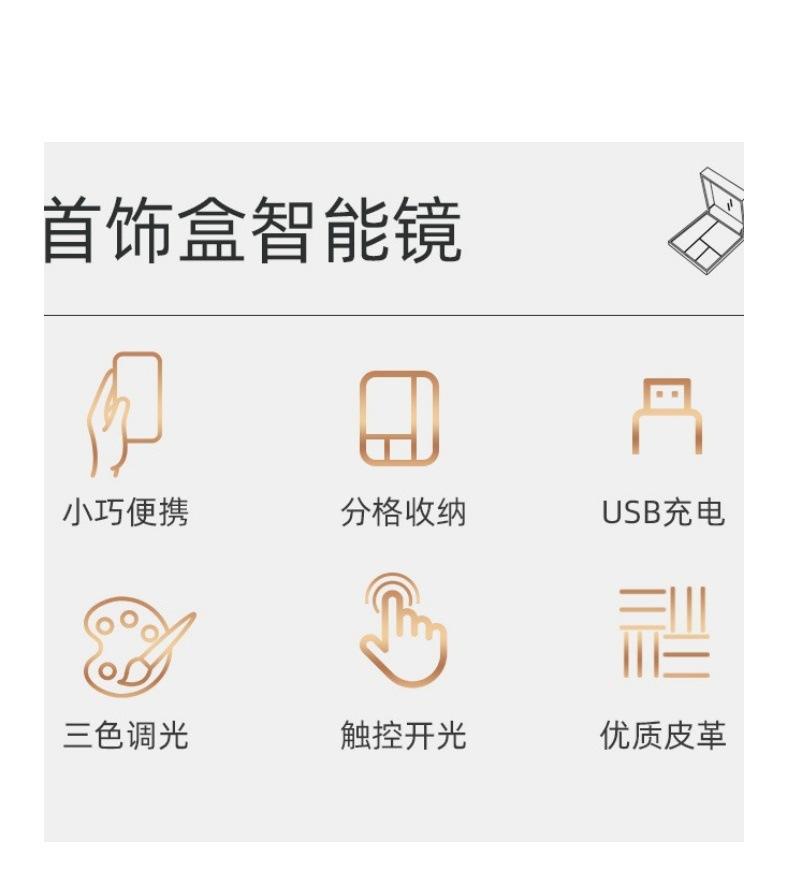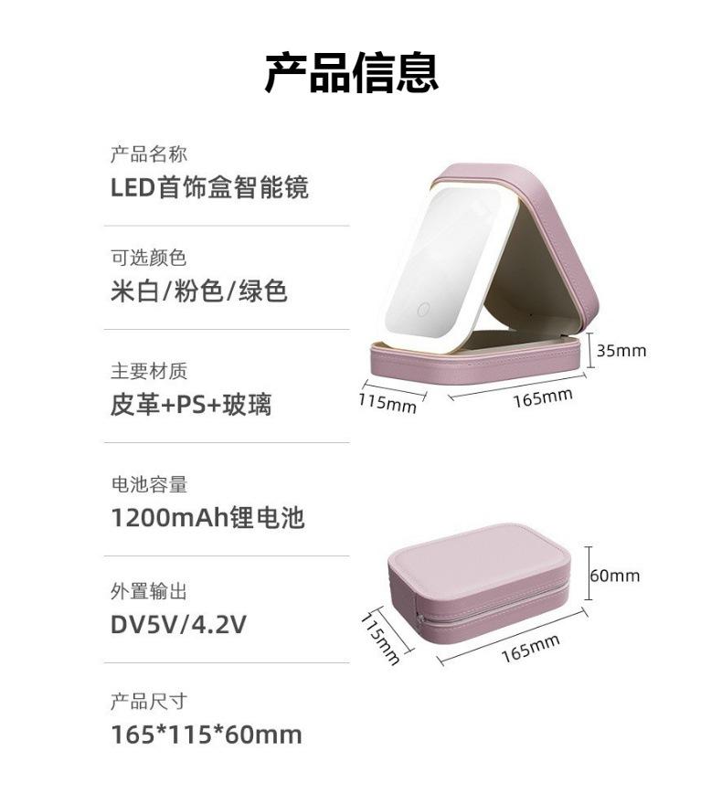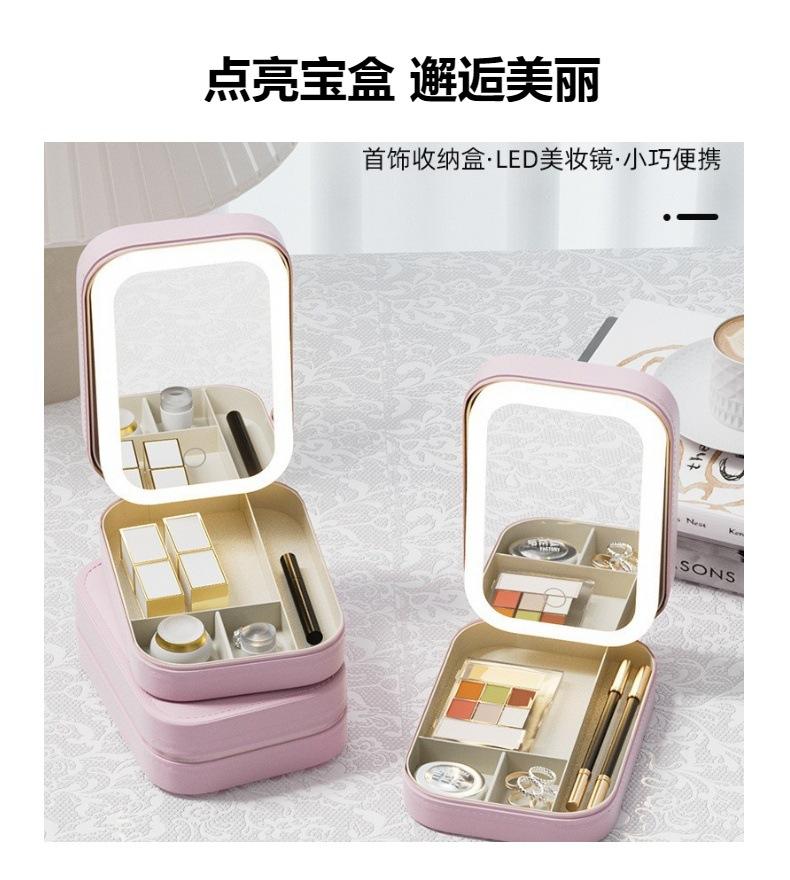 Espelho LED com Escurecimento em Três Cores Caixa de Maquiagem Caixa de Armazenamento de Cosméticos Caixa de Joias Caixa de Armazenamento Joias Caixa de Armazenamento de Joias