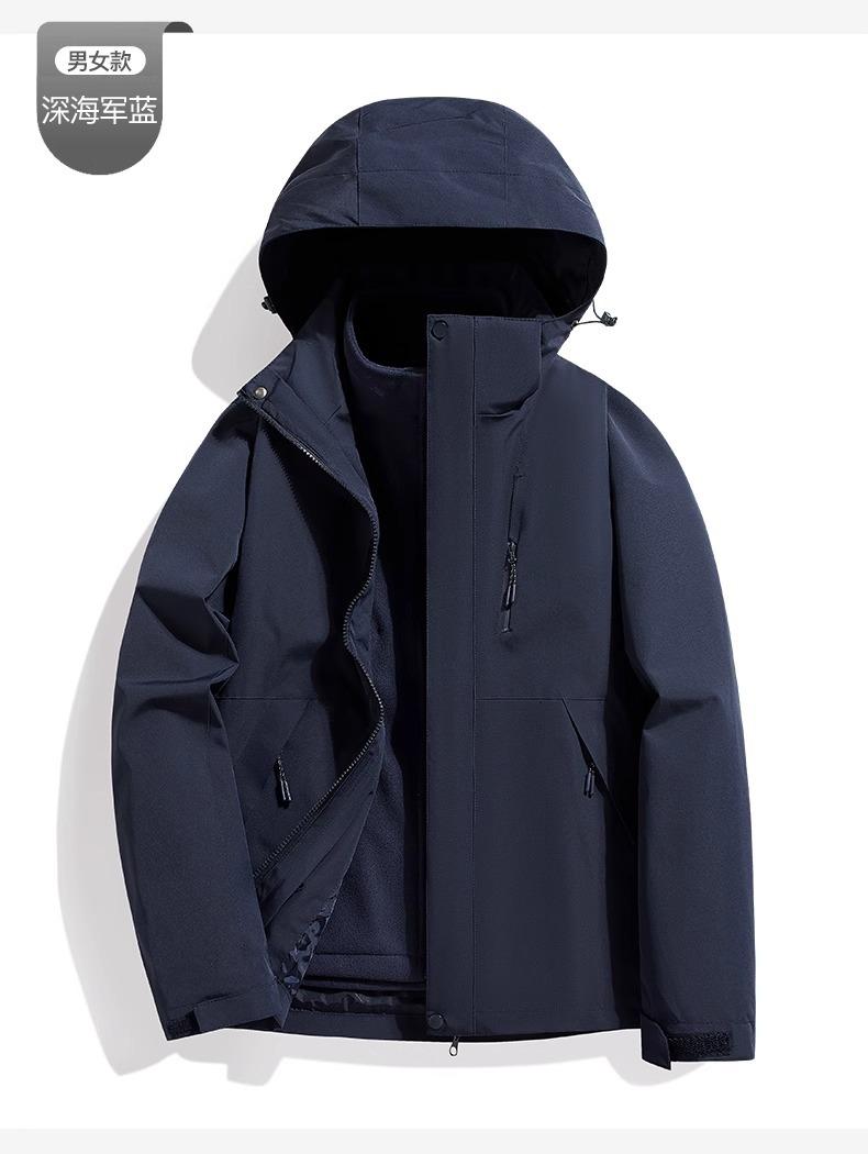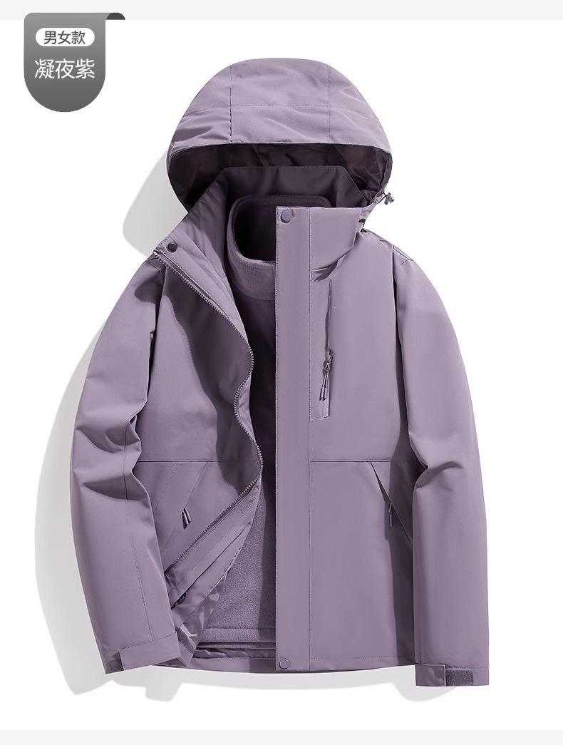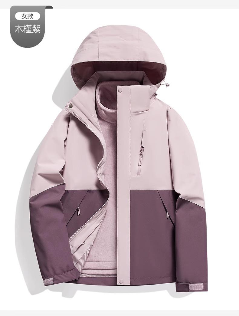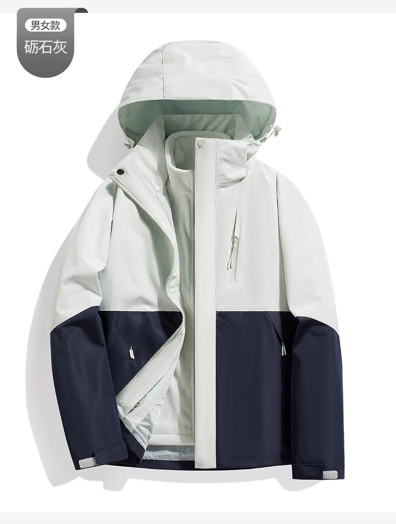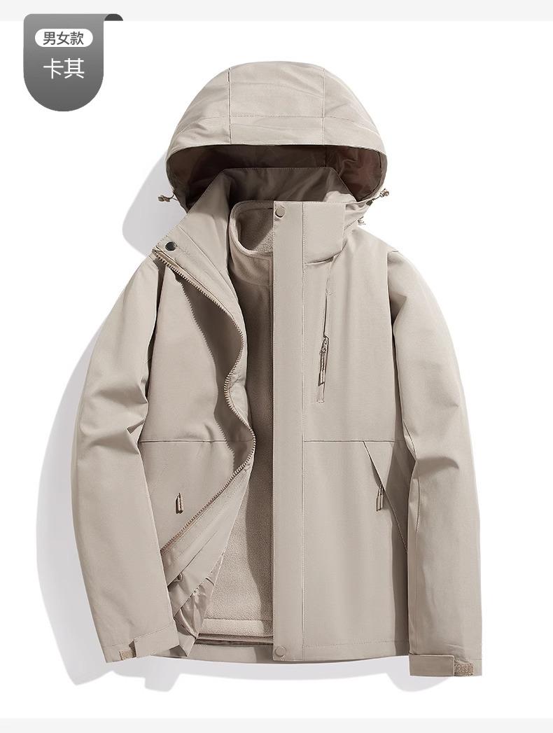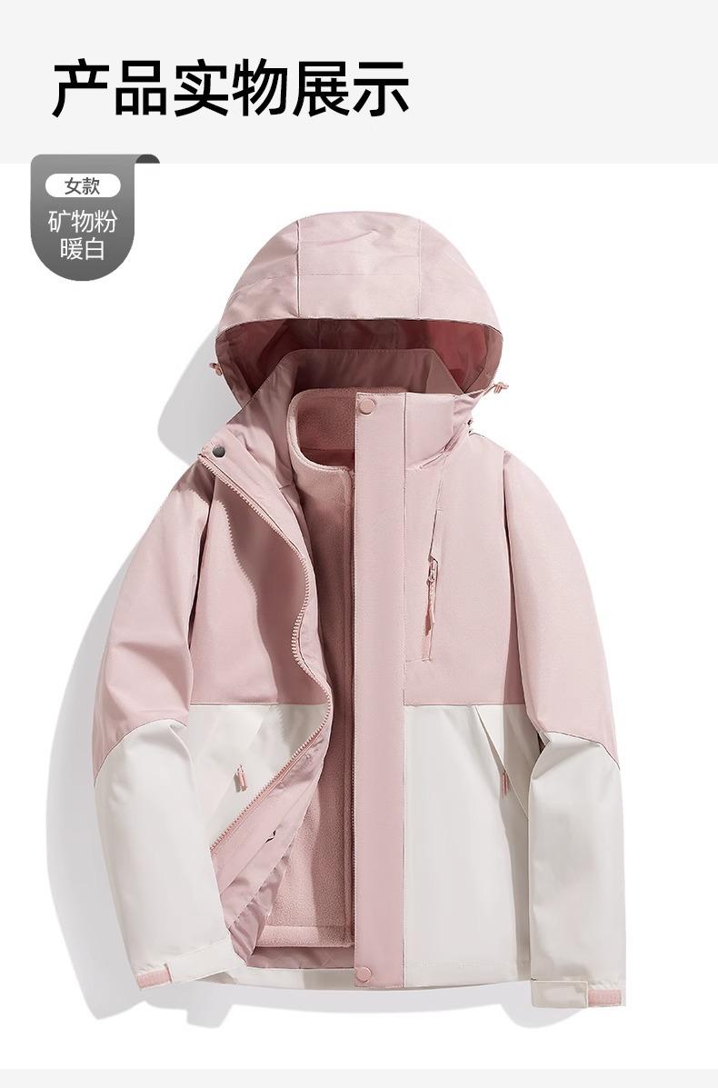 Roupas de corrida ao ar livre, quentes, à prova de vento, viagem, montanhismo, terno para homens e mulheres, 2024, novo, três em um, lã, forro, jaqueta