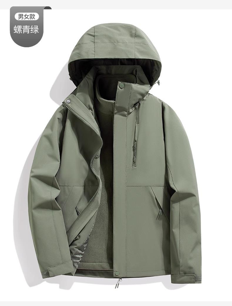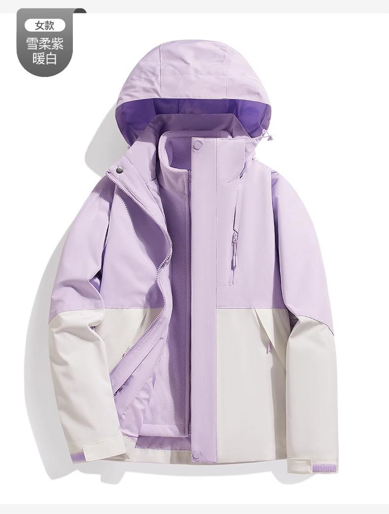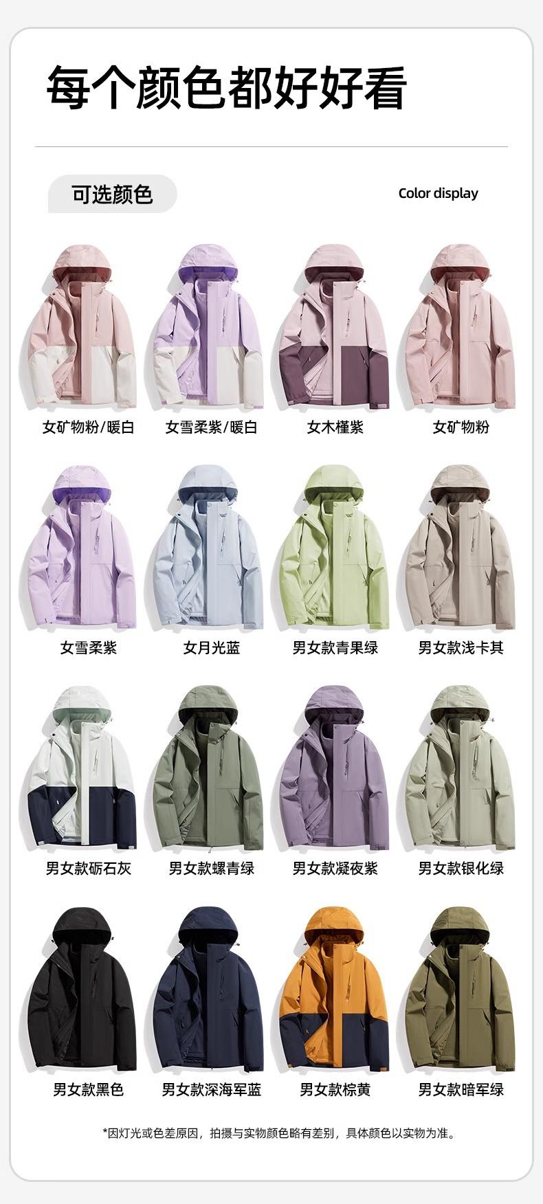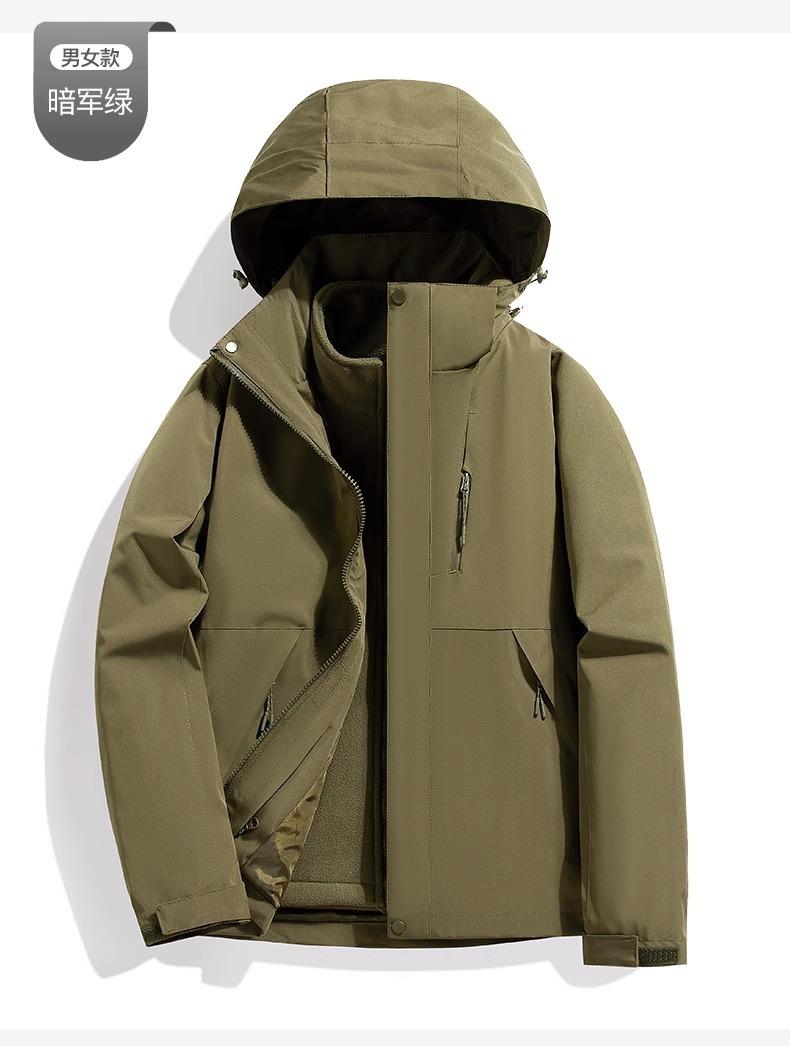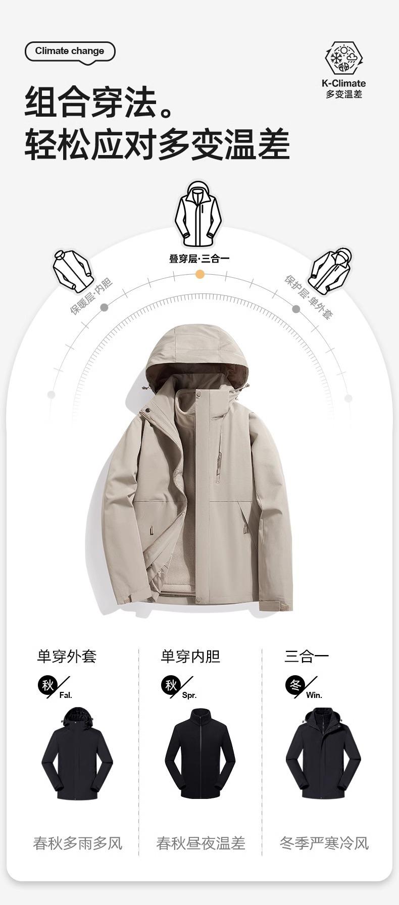 Roupas de corrida ao ar livre, quentes, à prova de vento, viagem, montanhismo, terno para homens e mulheres, 2024, novo, três em um, lã, forro, jaqueta