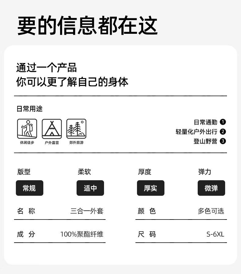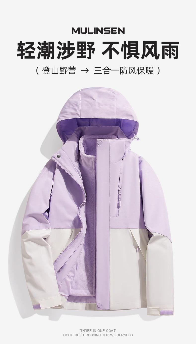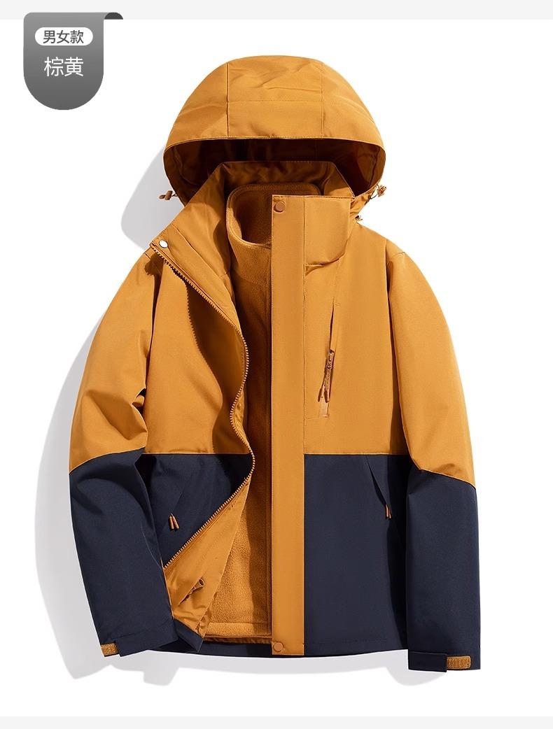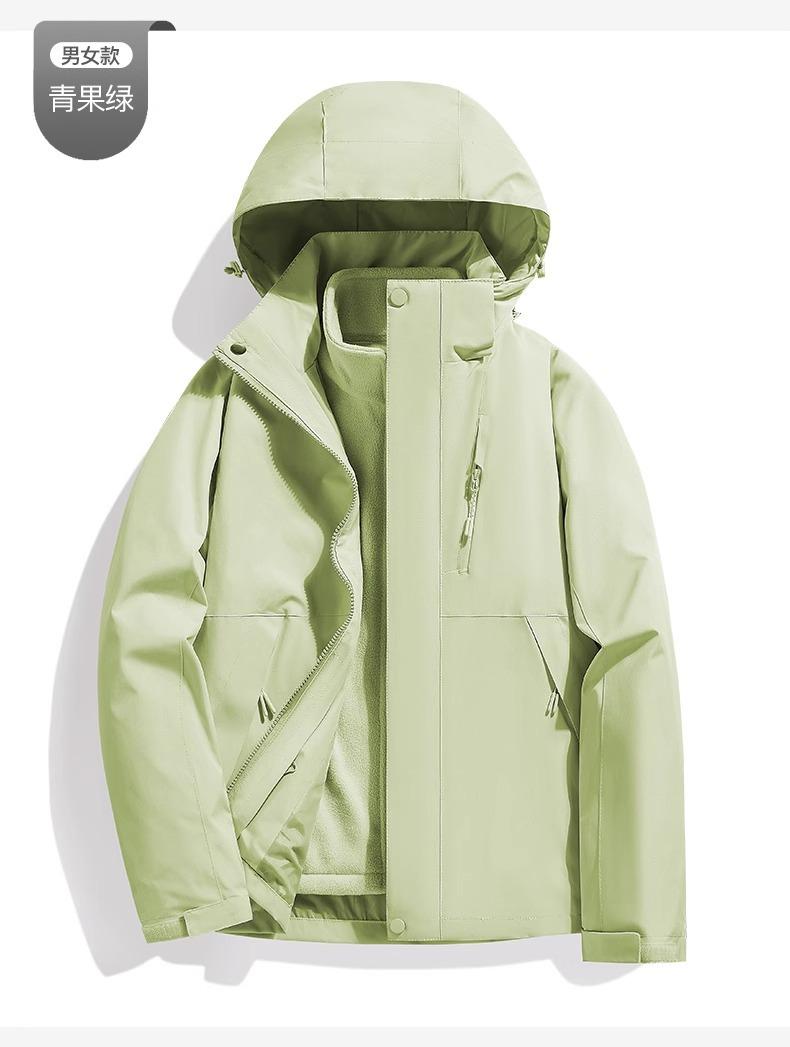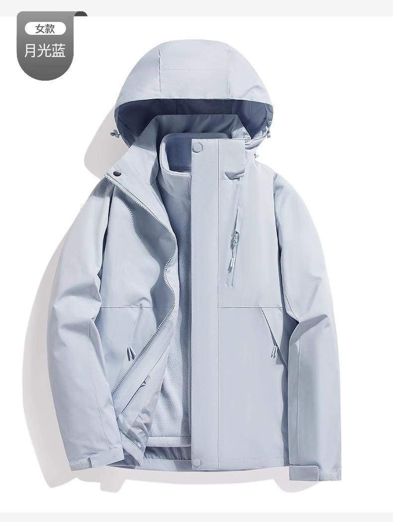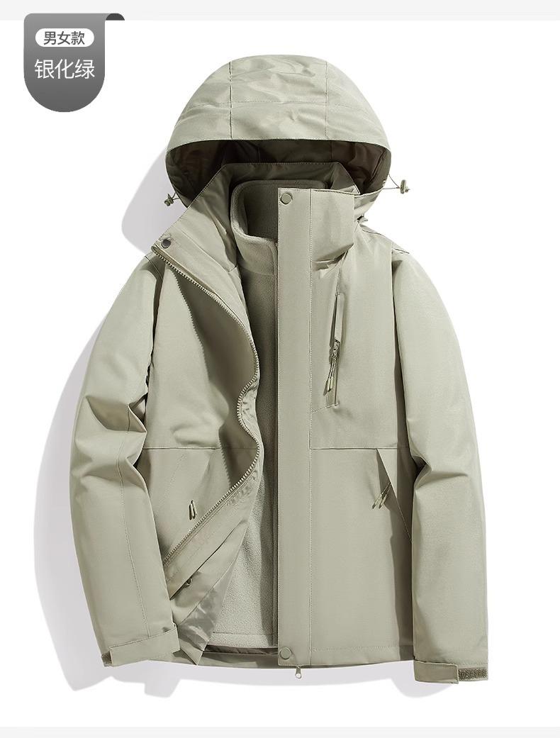Roupas de corrida ao ar livre, quentes, à prova de vento, viagem, montanhismo, terno para homens e mulheres, 2024, novo, três em um, lã, forro, jaqueta