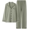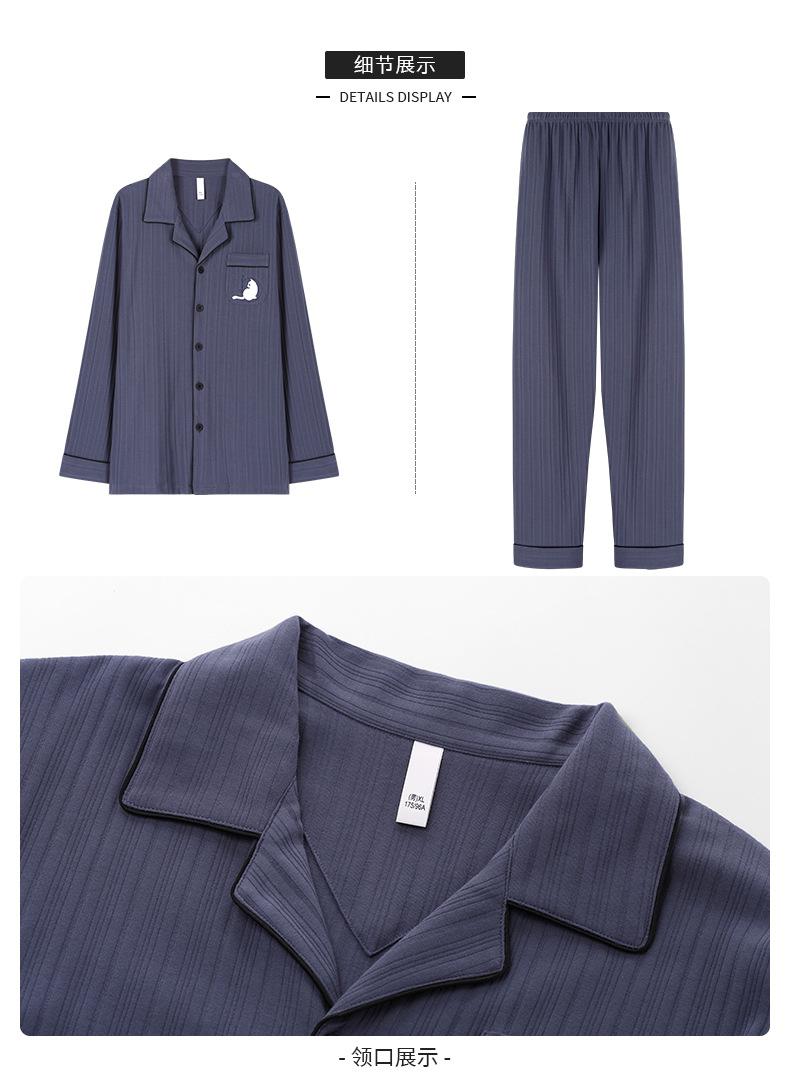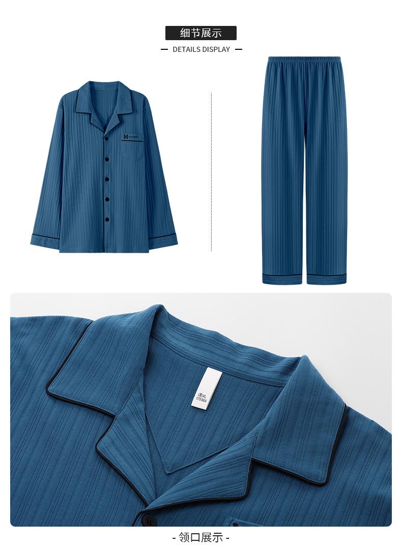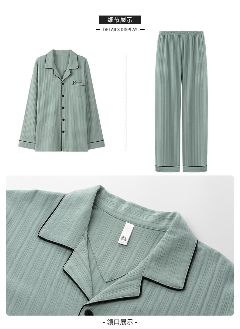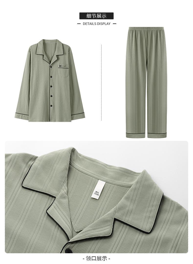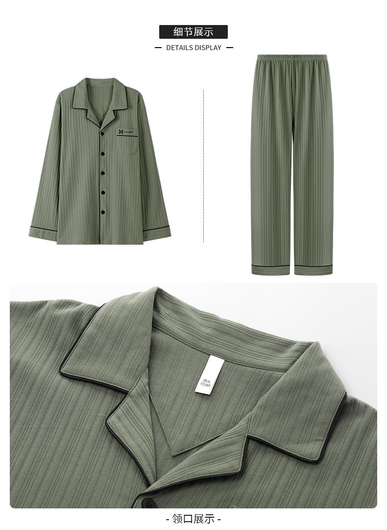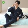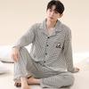 2025 Novo Pijama Masculino de Algodão Puro Listrado de Manga Comprida e Calça Comprida Cardigã Casual Conjunto de Roupa de Casa para Primavera e Outono