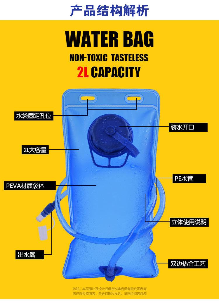 『Estrutura』Moldagem de uma peça, pode ser usada com uma mochila de bolsa de água dedicada, design de desempenho de vedação de alta qualidade, junta dentro da tampa, anti-infiltração e vazamento, não é fácil de deformarfácilEnvelhecimento. Cachimbo de água macio de alta qualidade, comprimento 100CM.