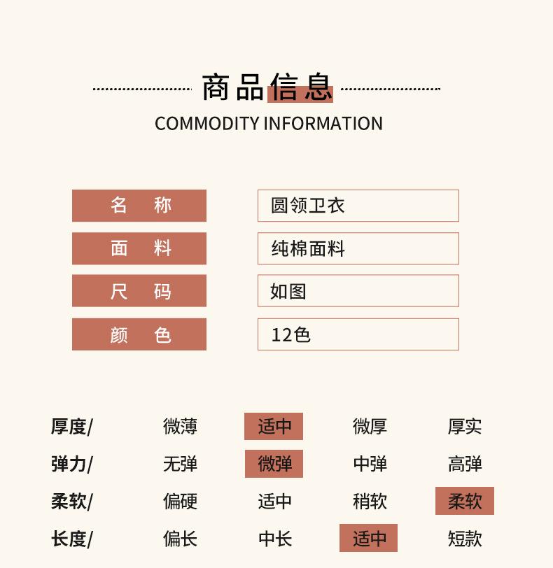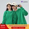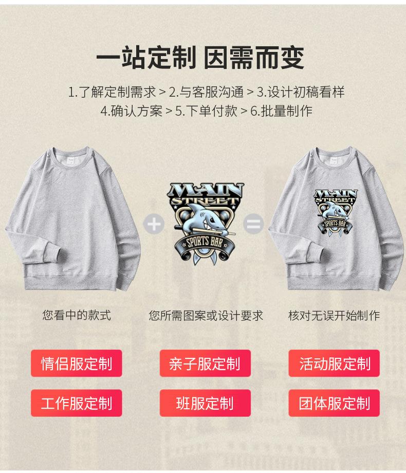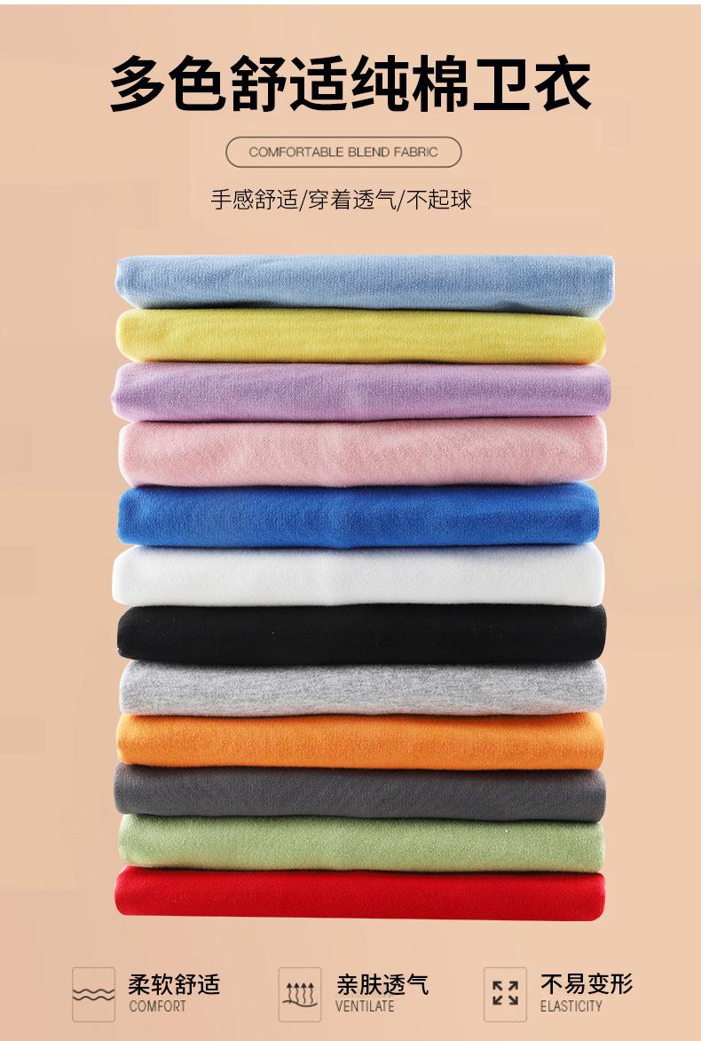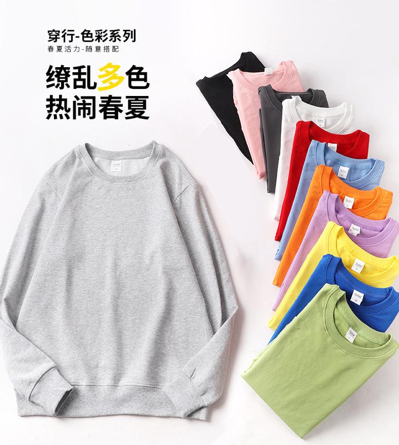 Moletom de Algodão Puro Gola Redonda Manga Longa Jaqueta Primavera e Outono Ombro Caído Pulôver Top Simples Cor Sólida Pode Ser Estampado com Logo Solto e Versátil