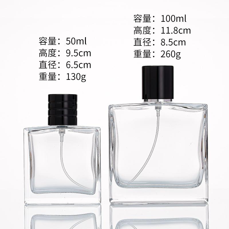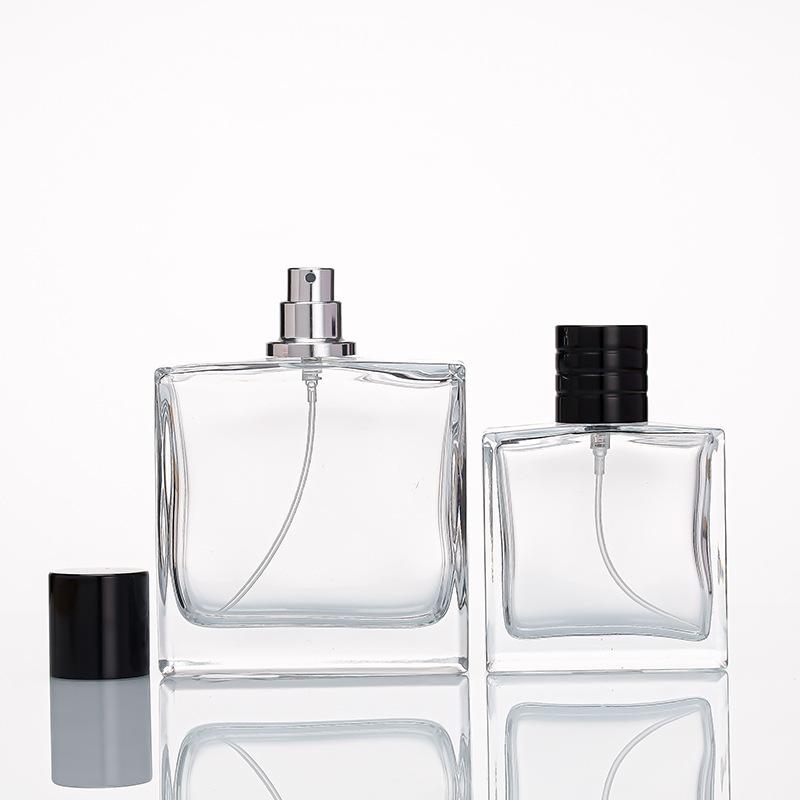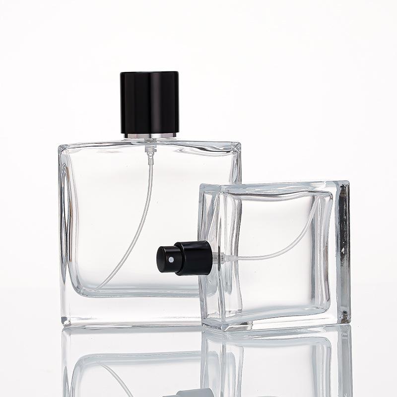 Compre Em estoque frasco de perfume quadrado plano 100ML baioneta sub-garrafa imprensa frasco de spray de perfume frasco de perfume de vidro transparente frasco de perfume no atacado no Joom.pro