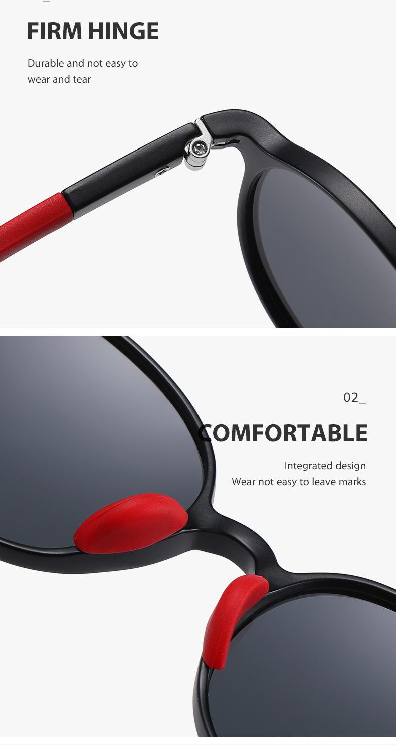 Este par de óculos de sol polarizados usa lentes polarizadas TAC. As vantagens das lentes reforçadas são resistência ao desgaste, boa flexibilidade, forte resistência ao impacto, visão clara e bom efeito antirreflexo!