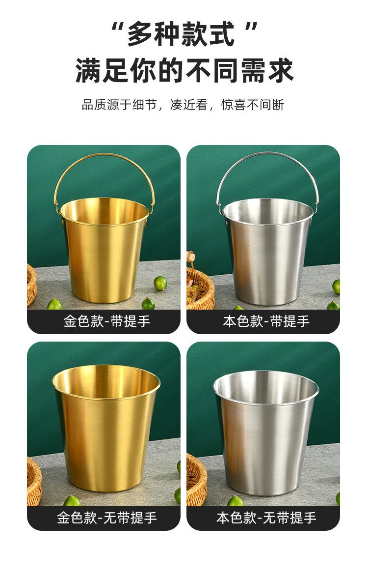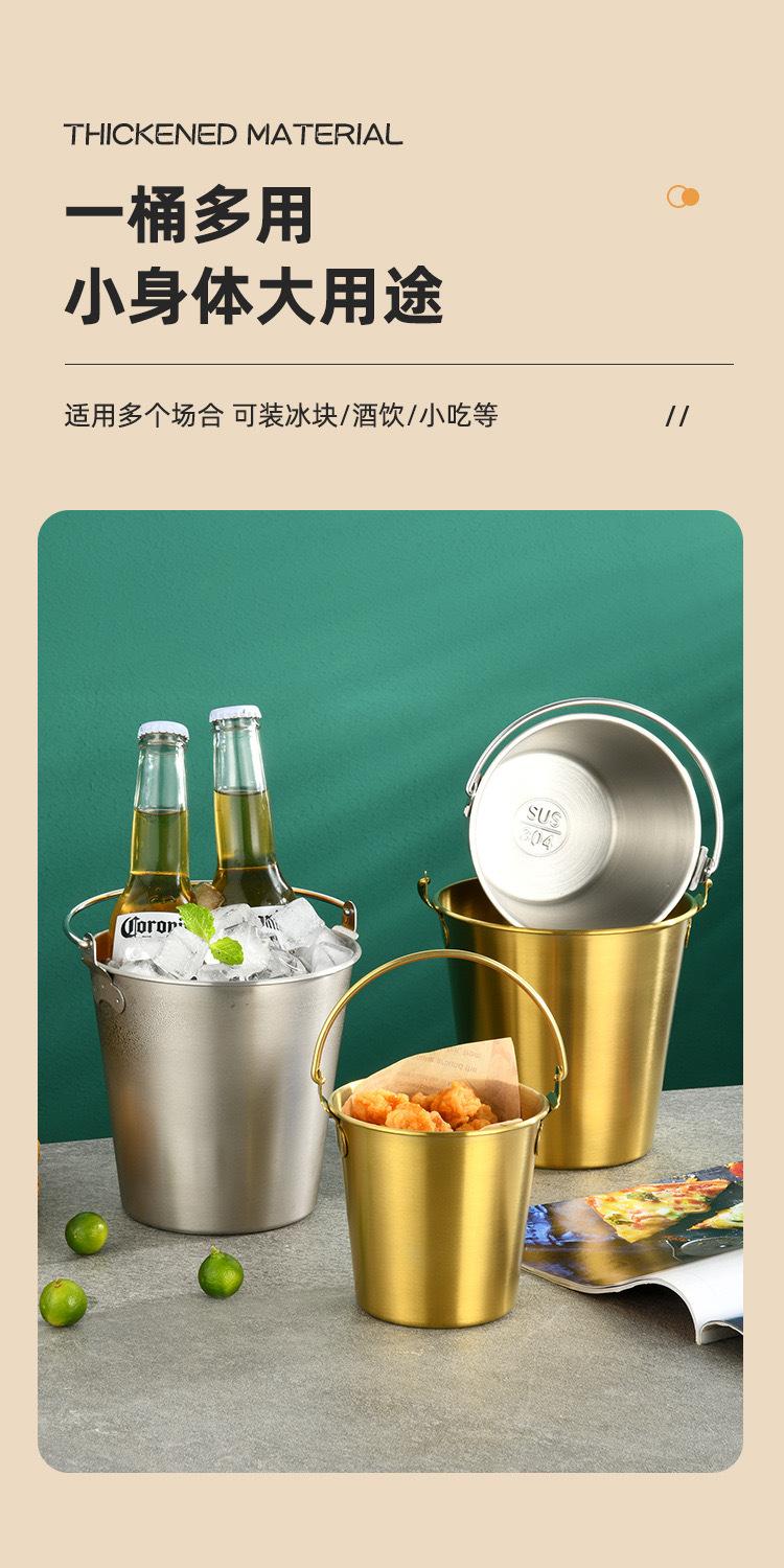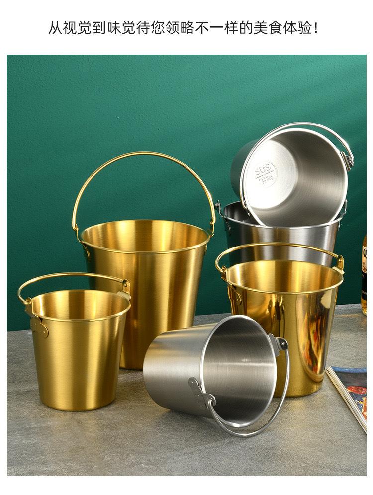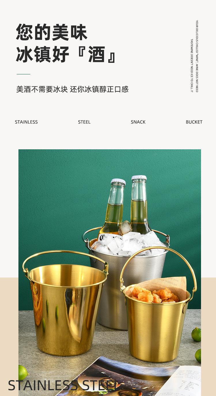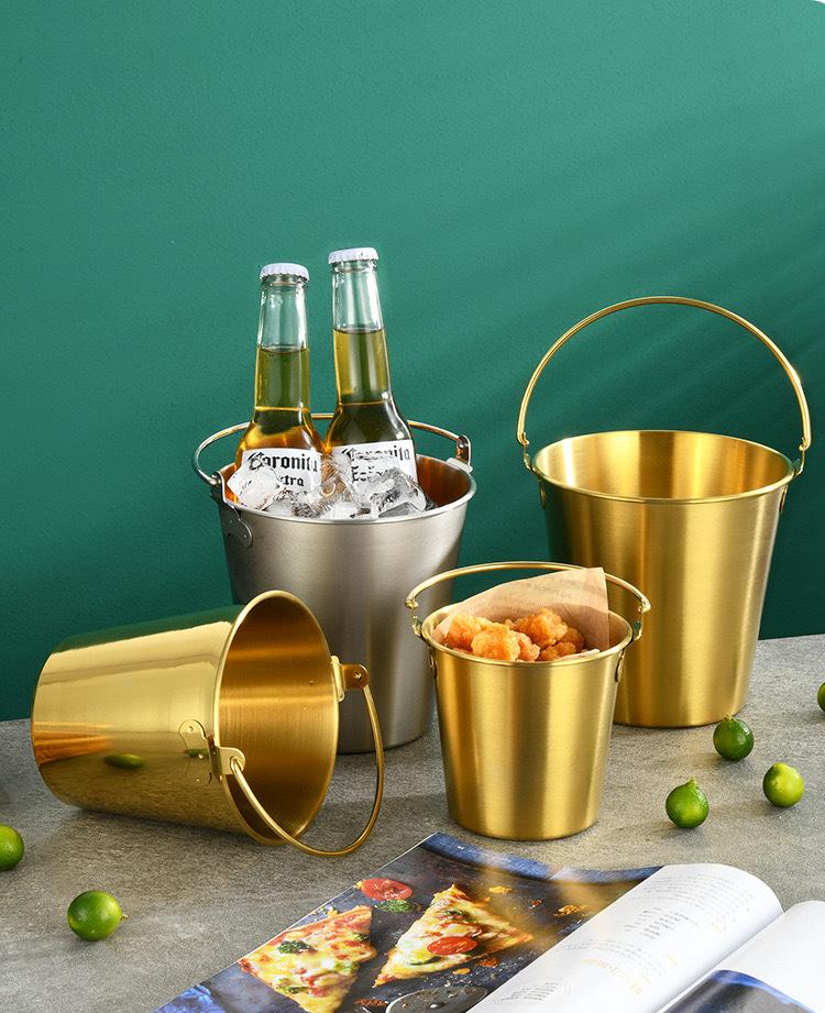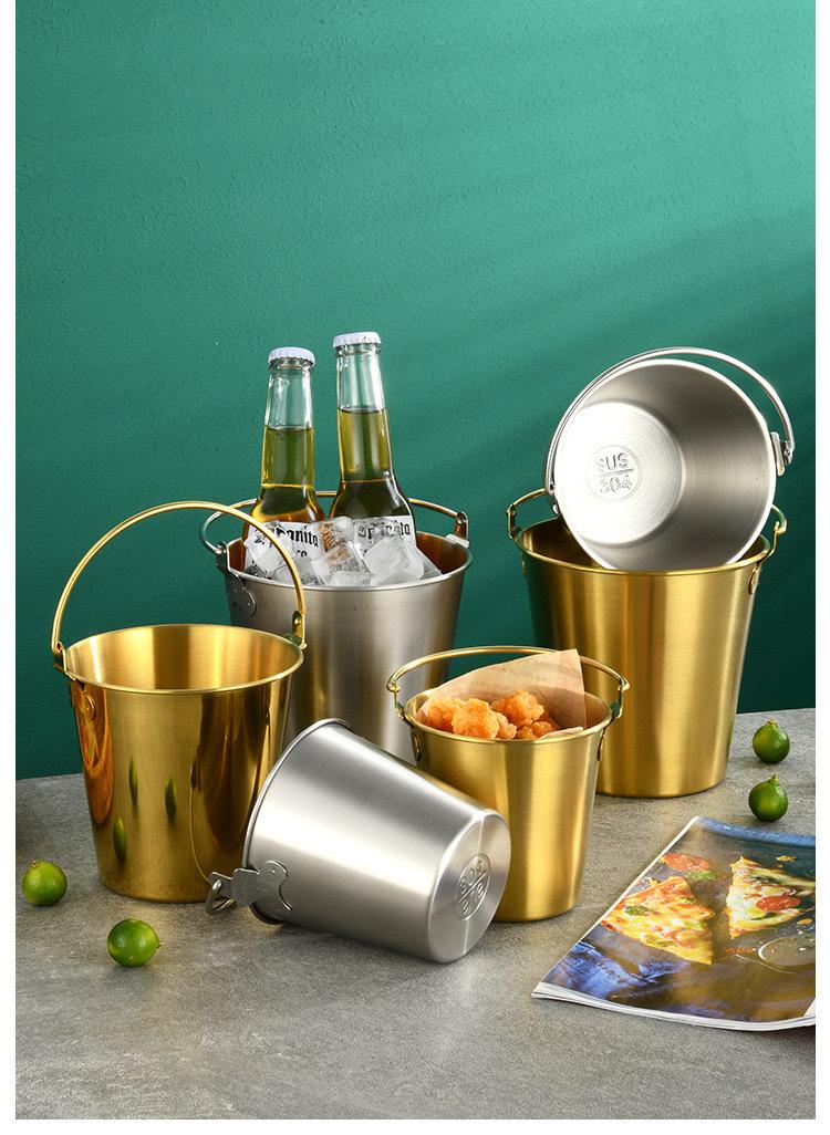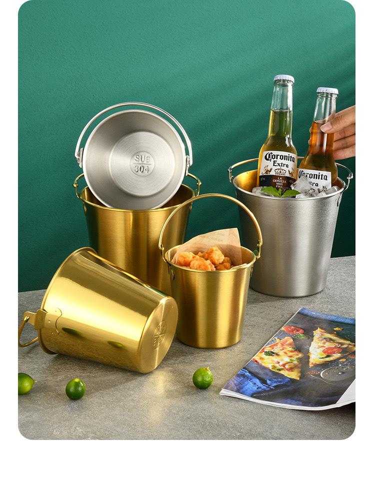 Balde de gelo 304 Balde de gelo de aço inoxidável Balde de alto valor de cor Suprimentos de barra Balde de champanhe Mini balde de lanche de batatas fritas Balde pequeno