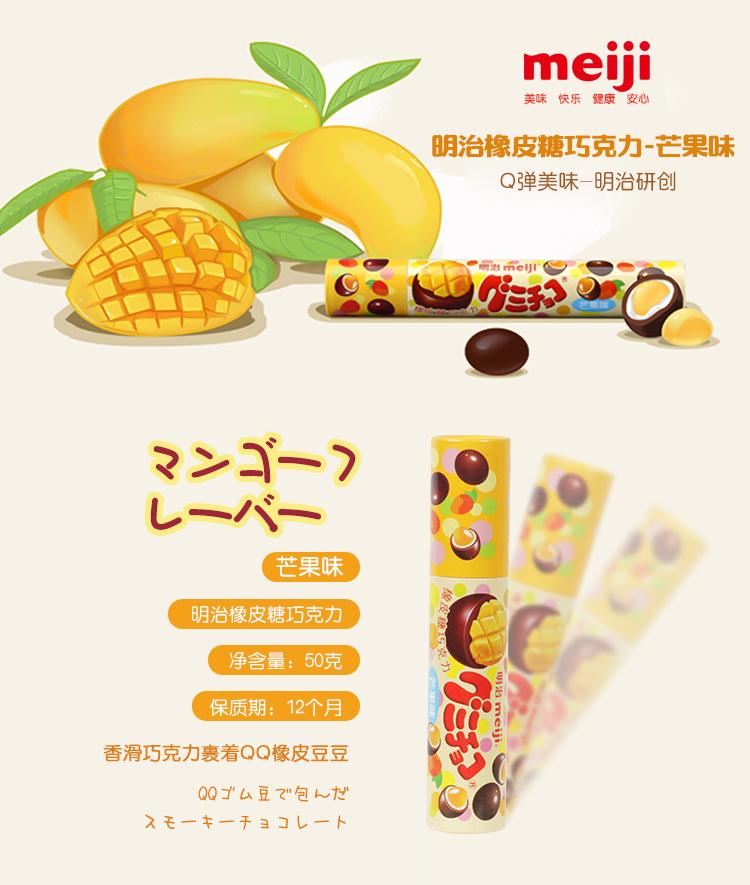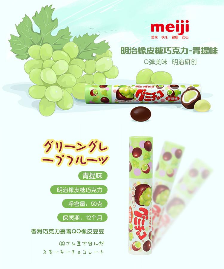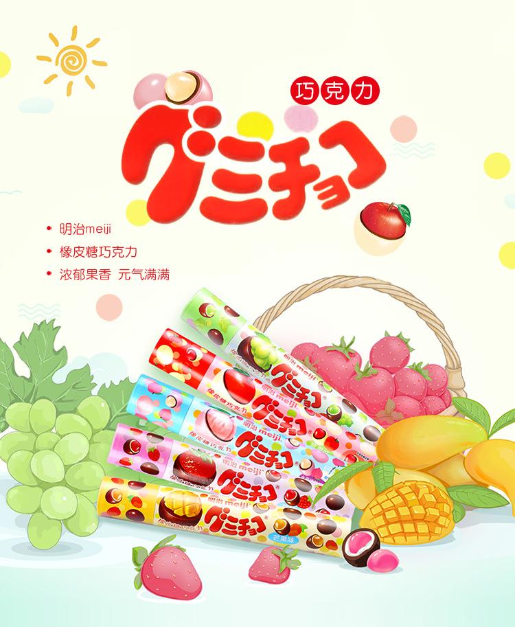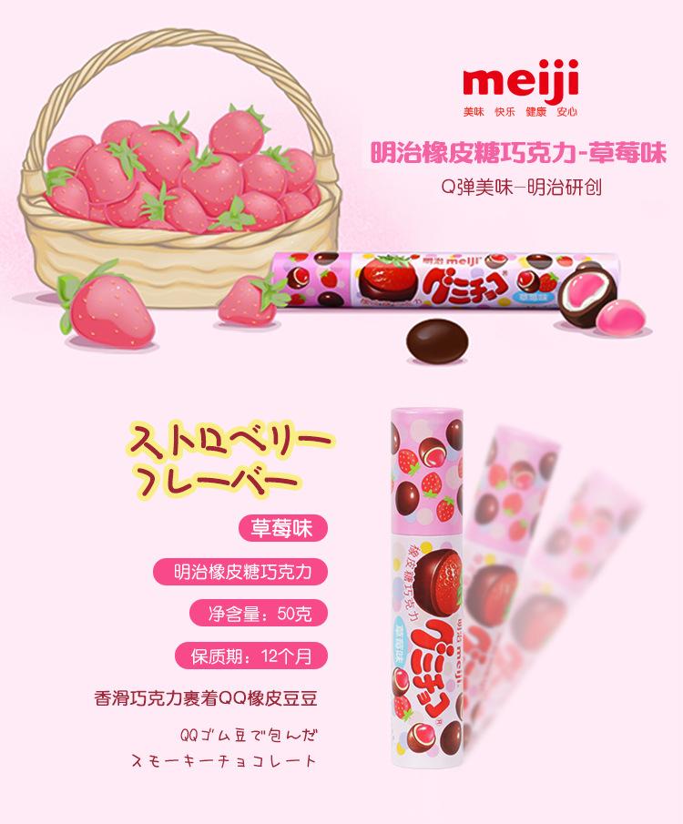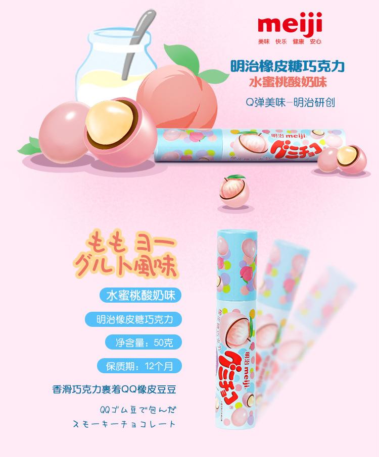 Lanche infantil Meiji gomas de chocolate 50g/morango pêssego maçã sanduíche gomas