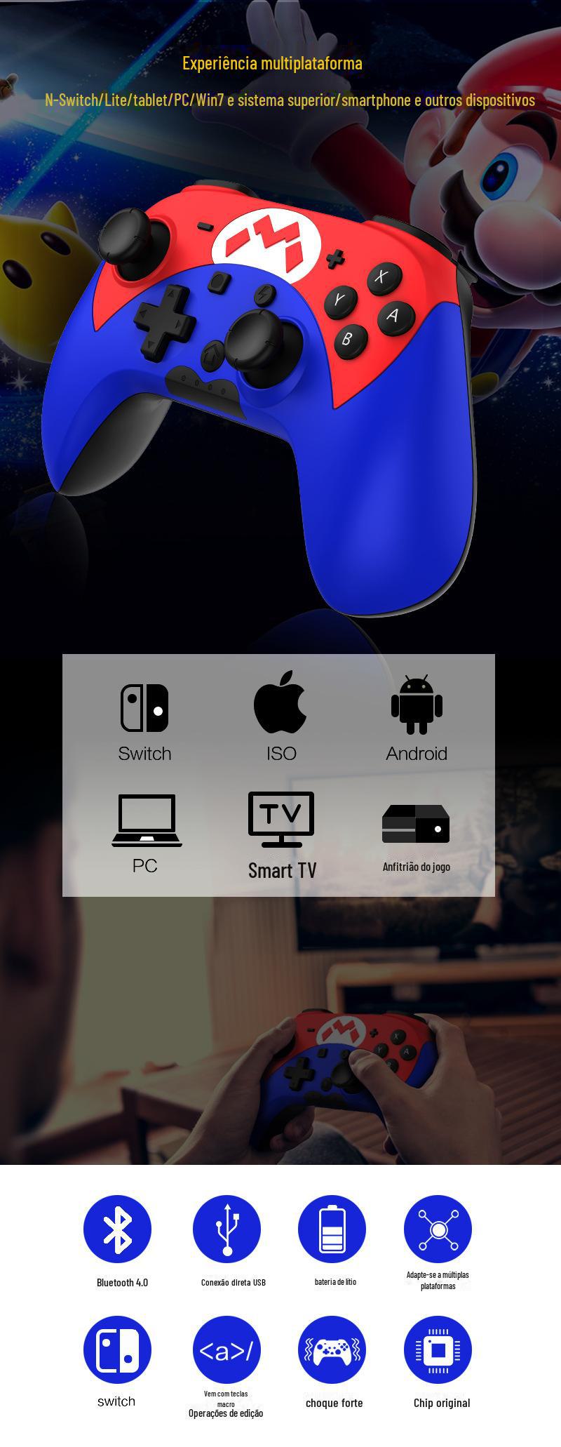 Nome do produto: Controlador de jogo sem fio Bluetooth Switch PRO com giroscópio somatossensorial, vibração dupla contínua, joystick 3D de alta precisão