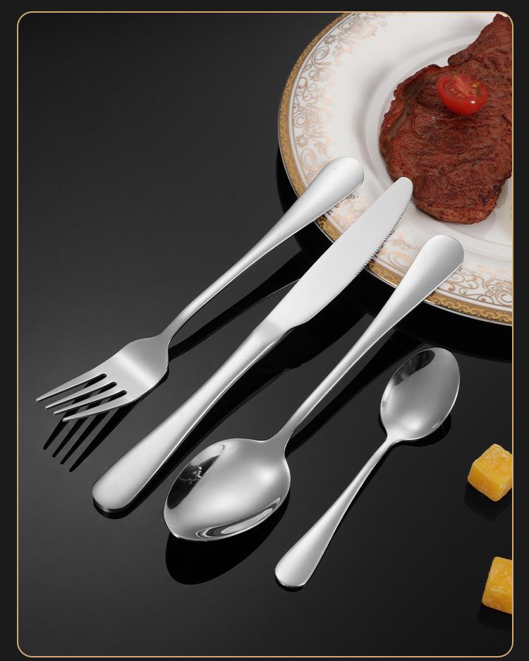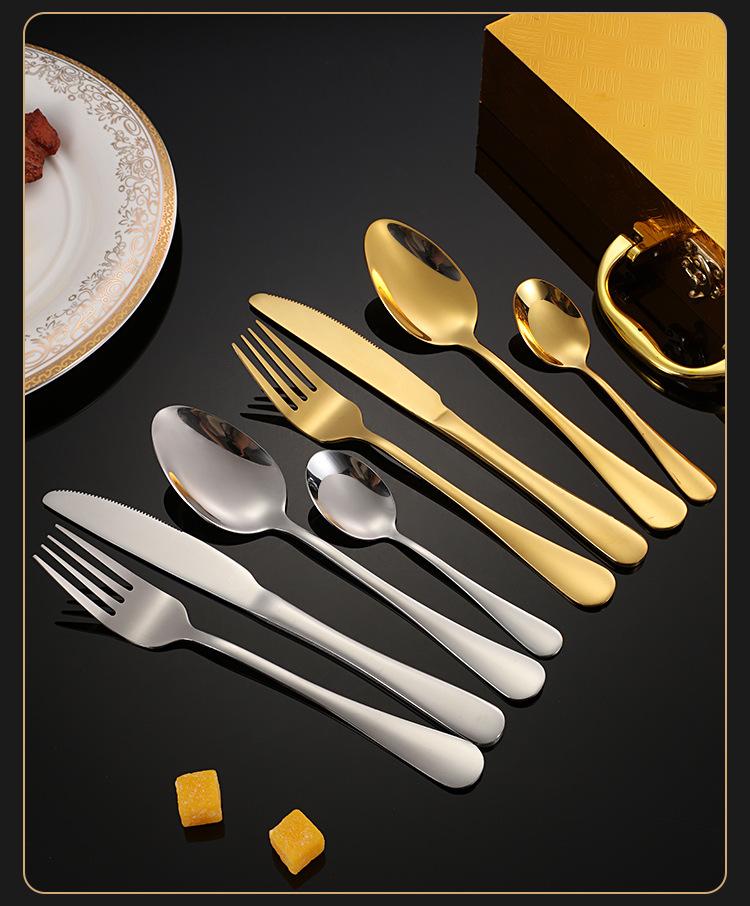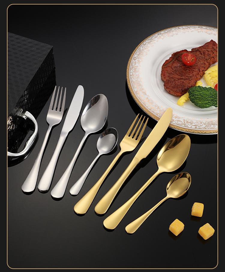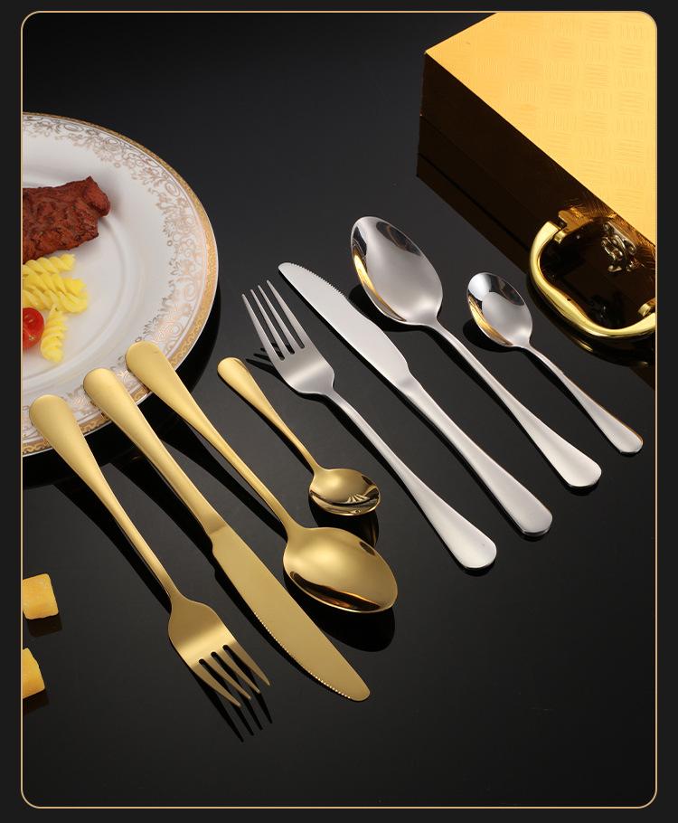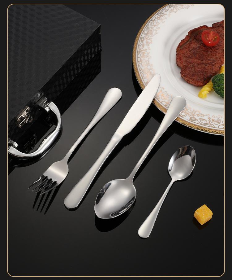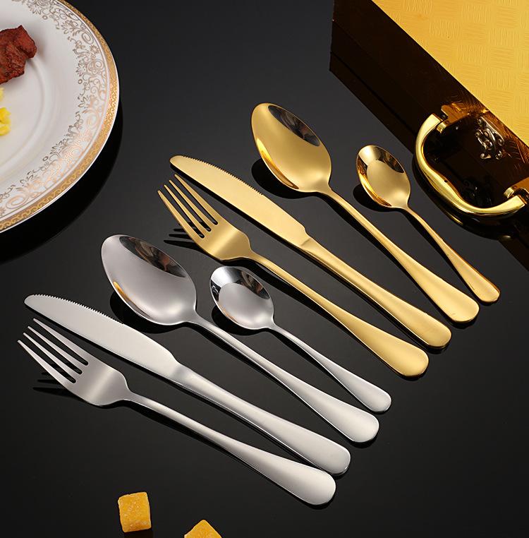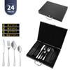Faca de talheres de aço inoxidável ocidental transfronteiriço e colher de garfo 1010 faca de bife colher de sobremesa conjunto de caixa de presente de 24 peças
