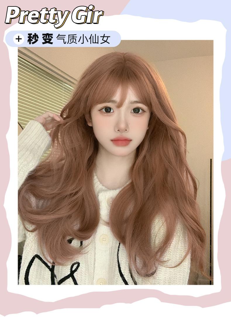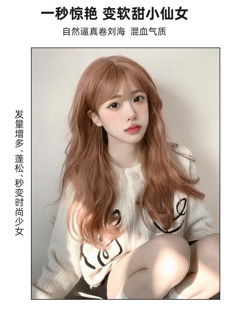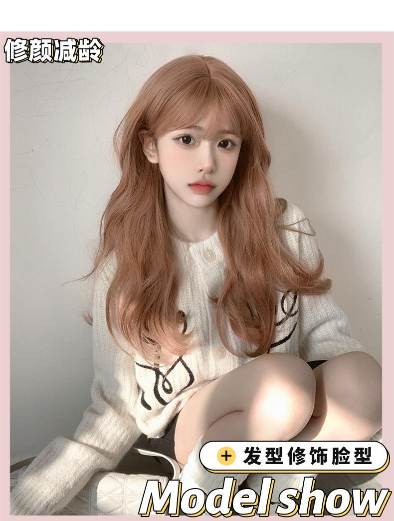 Peruca Atacado Transfronteiriço para Mulheres com Cabelo Longo Verão Faixa de Cabeça Completa Laranja Grande Ondulado Cabelo Longo Cacheado Peruca Lolita