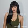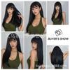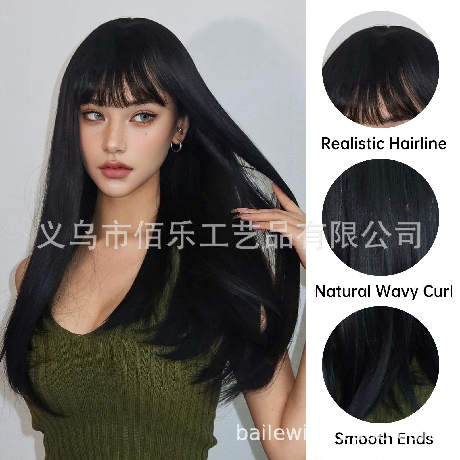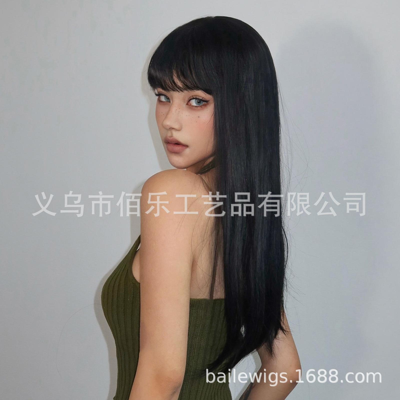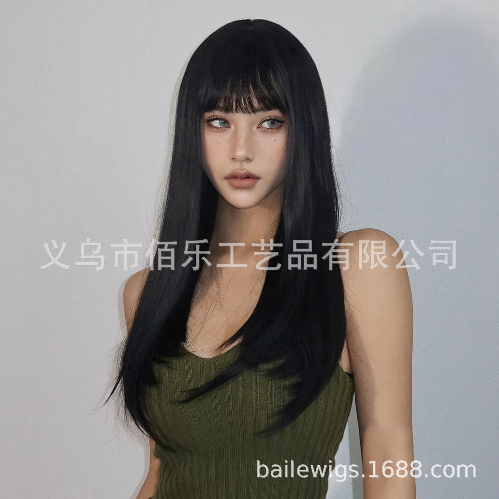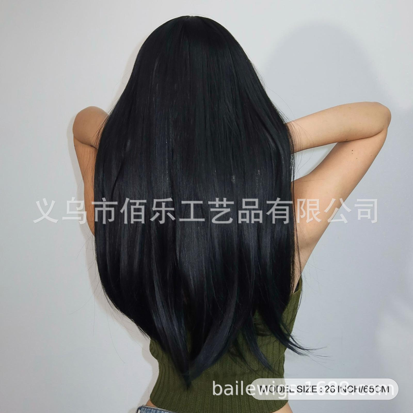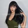 Peruca preta cobertura de cabeça cheia franja cabelo longo liso peruca de fibra química feminina de alta temperatura fábrica de seda atacado cabelo