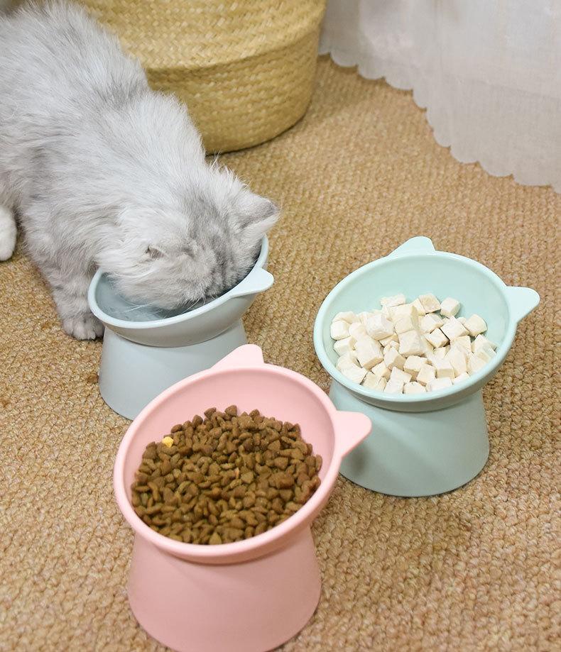 [Nome]: Nova proteção de pescoço oblíqua de plástico PP de pernas altas japonesas transfronteiriças, tigela única para alimentação e água de gato para cães e gatos