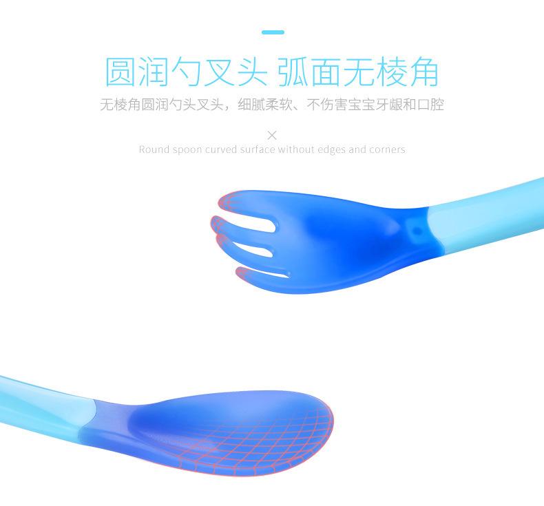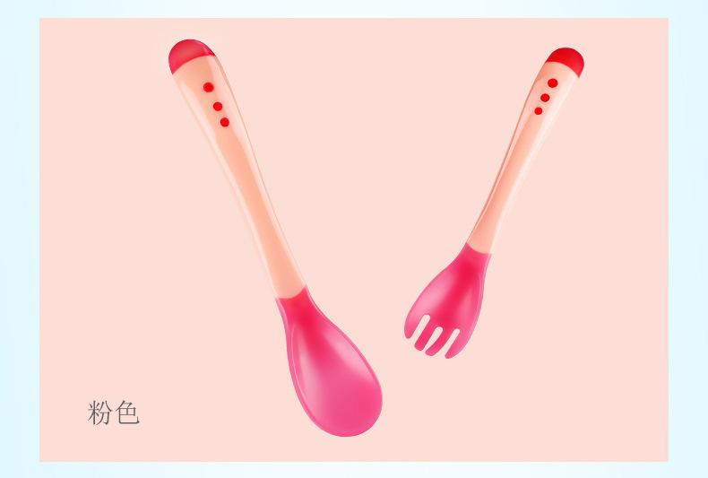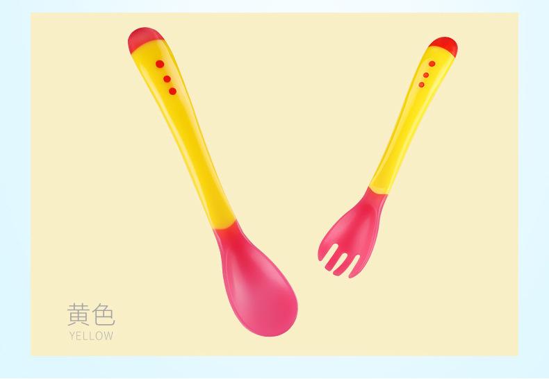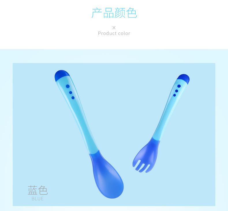 Este conjunto de garfo e colher pode ser substituído de acordo com a fase de crescimento do bebê! O círculo de cor clara na frente é uma cabeça macia, que ficará branca quando a temperatura atingir 40°C e retornará à sua cor original após esfriar abaixo de 38°C. Pode ser reutilizado muitas vezes. É perfeito para bebês!