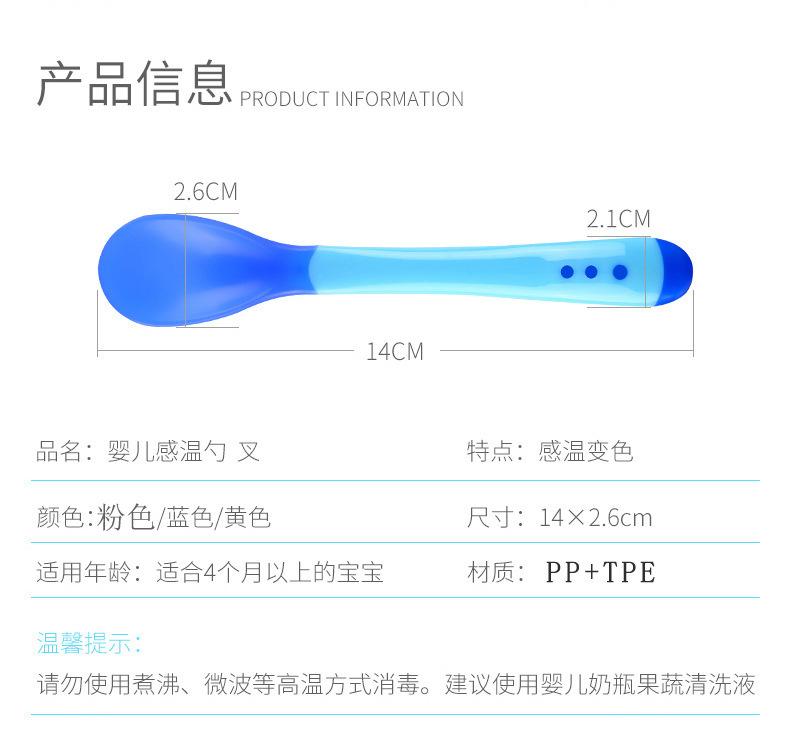 Este produto é feito de material sensível à temperatura. A temperatura adequada para os bebês comerem deve estar entre 38-40 ℃. A haste da colher que muda de cor, sensível à temperatura, ajuda a medir a temperatura dos alimentos, resolvendo o problema de não conseguir captar a temperatura dos alimentos ao alimentar seu bebê.