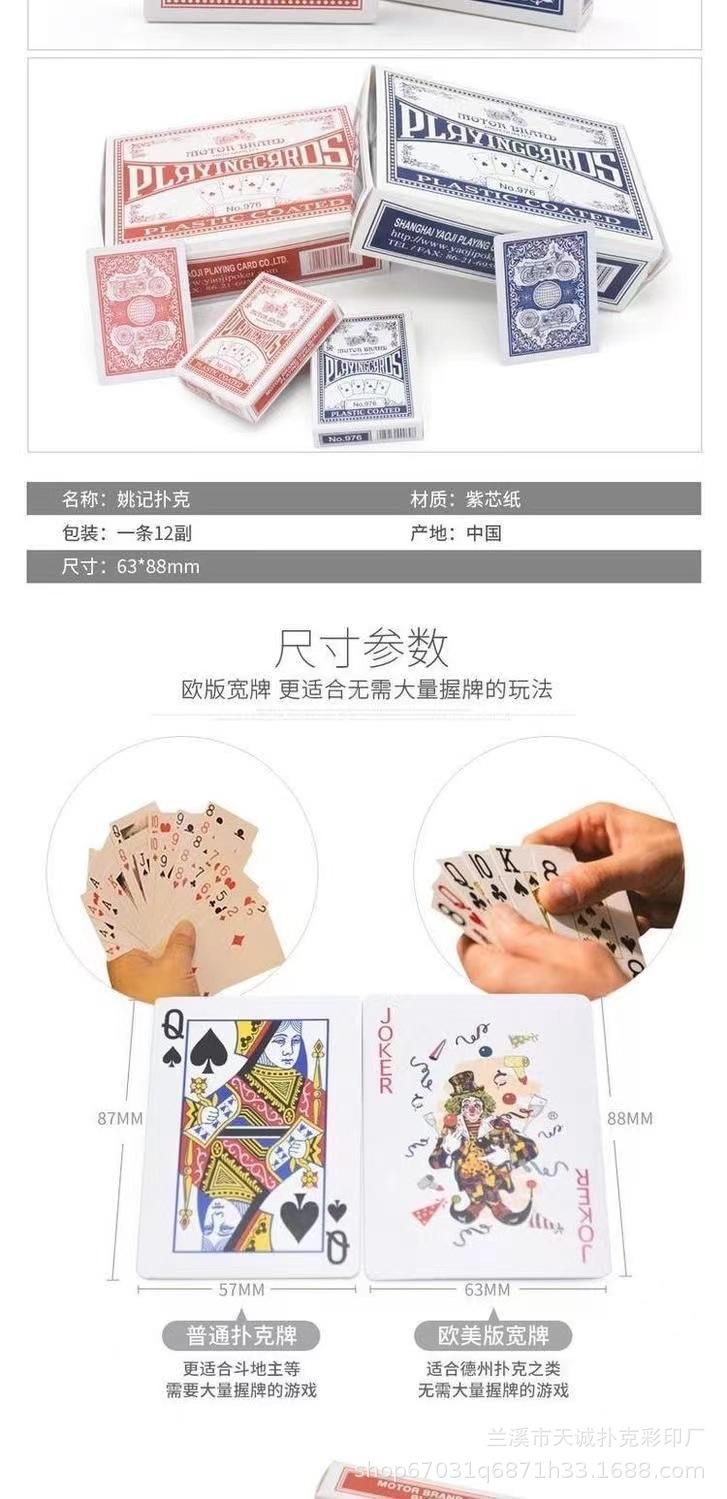 Caixa Inteira de Cartas de Baralho Yaoji Modelo 976 Cartas Largas 88*63 Vermelho e Azul Baralho Único Cartas de Baralho Exportação Pôquer em Estoque