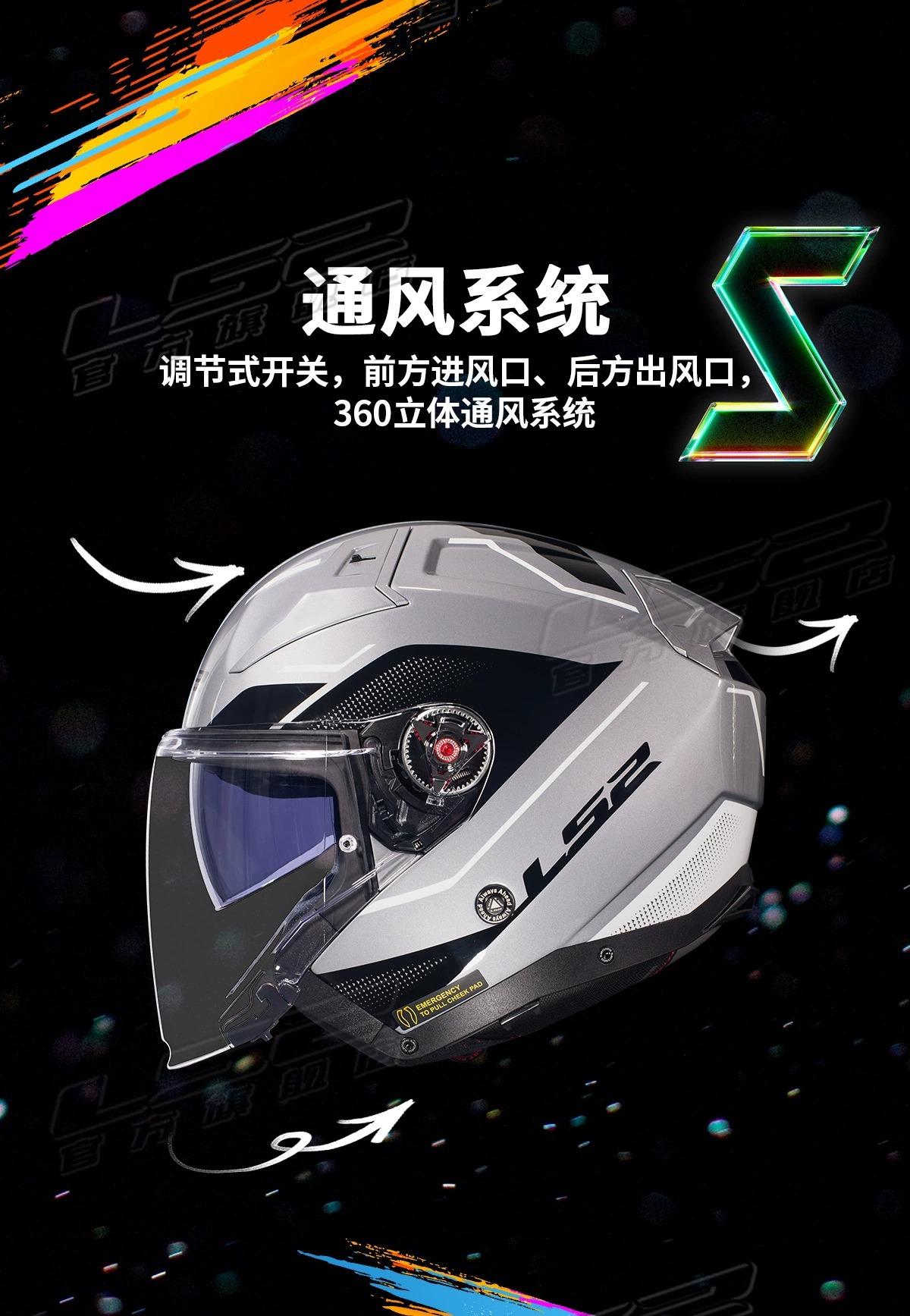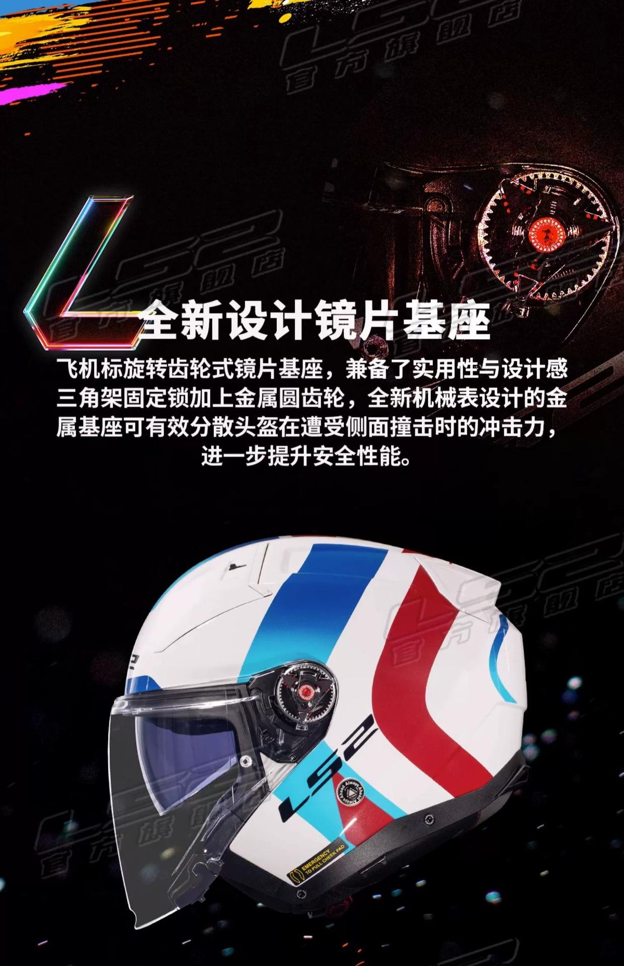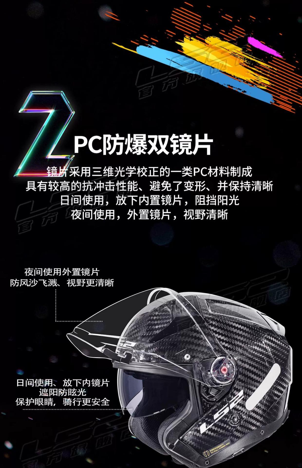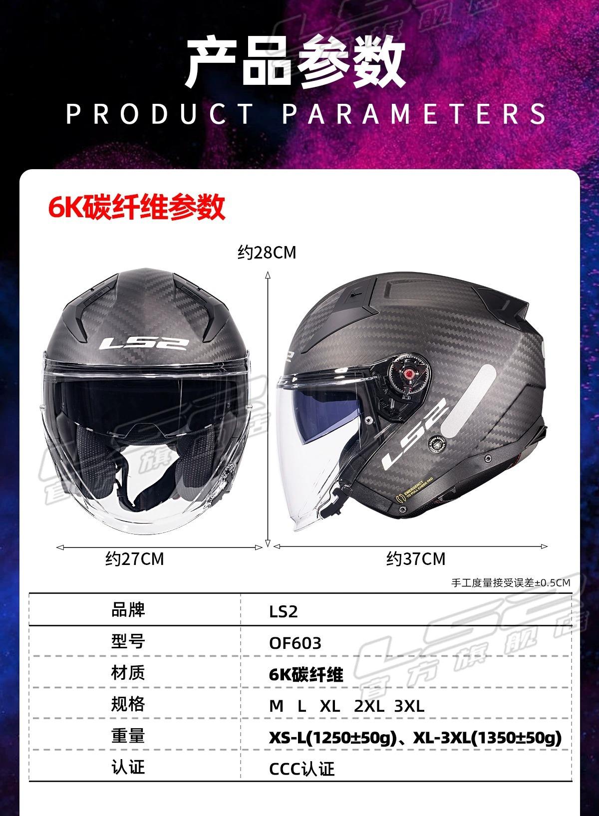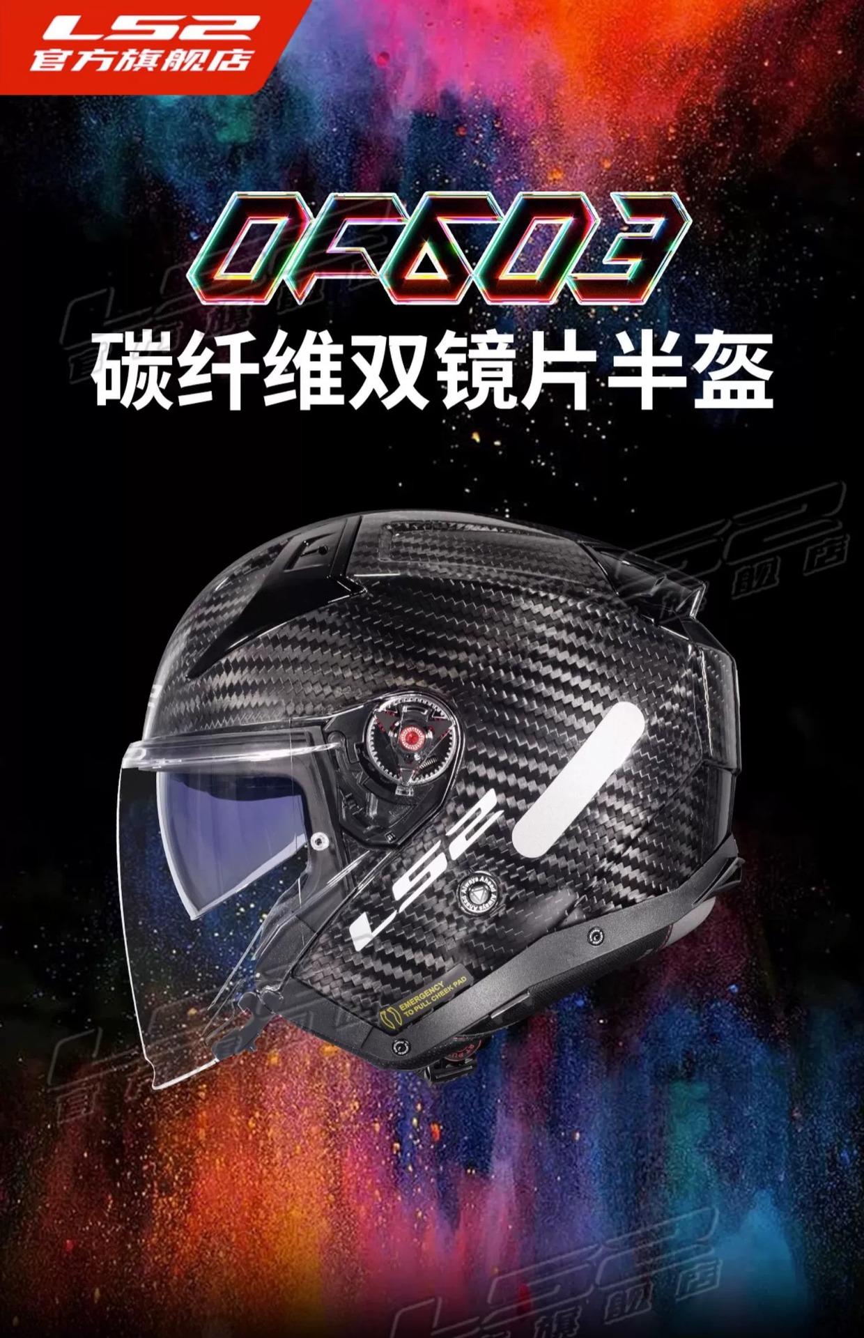 Capacete Meio Rosto de Fibra de Carbono Ls2 Capacete de Motocicleta Lente Dupla Masculino e Feminino Quatro Estações Inverno Veículo Elétrico Três Quartos Of603