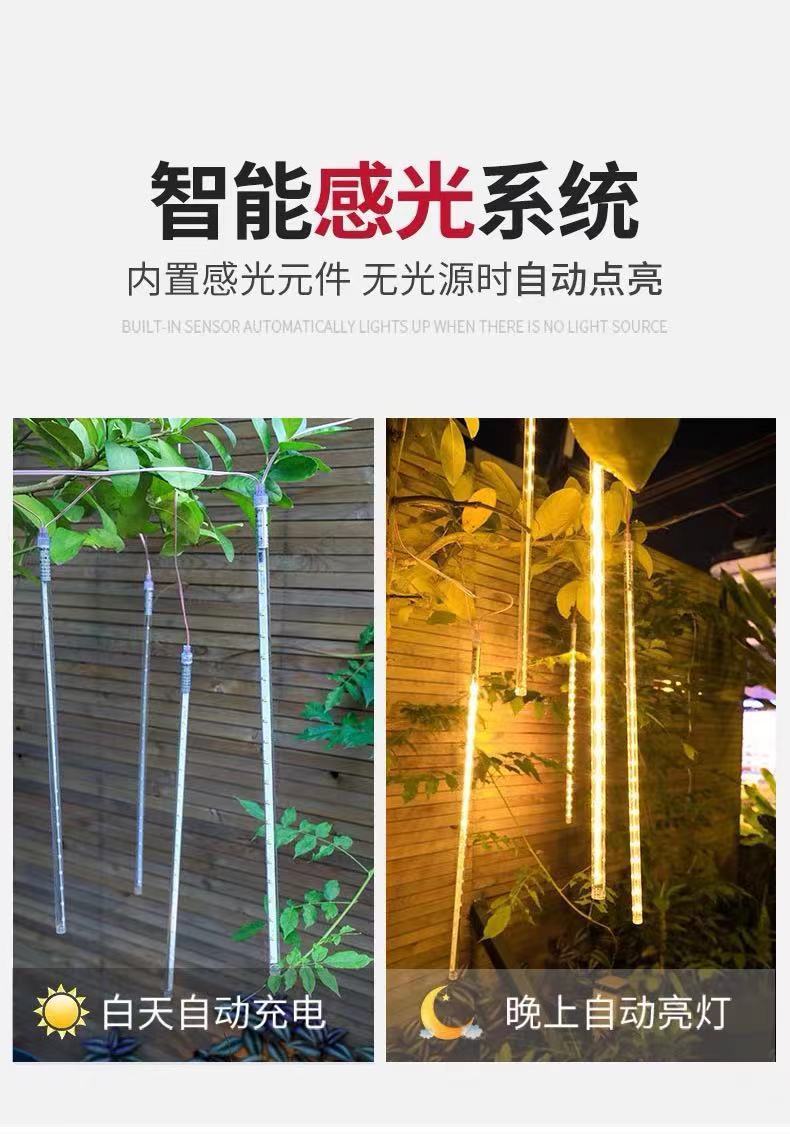 LED luz de chuva de meteoros solar corda luz piscando luz de corda estrelado ao ar livre à prova d'água pendurado árvore iluminação engenharia luz decorativa