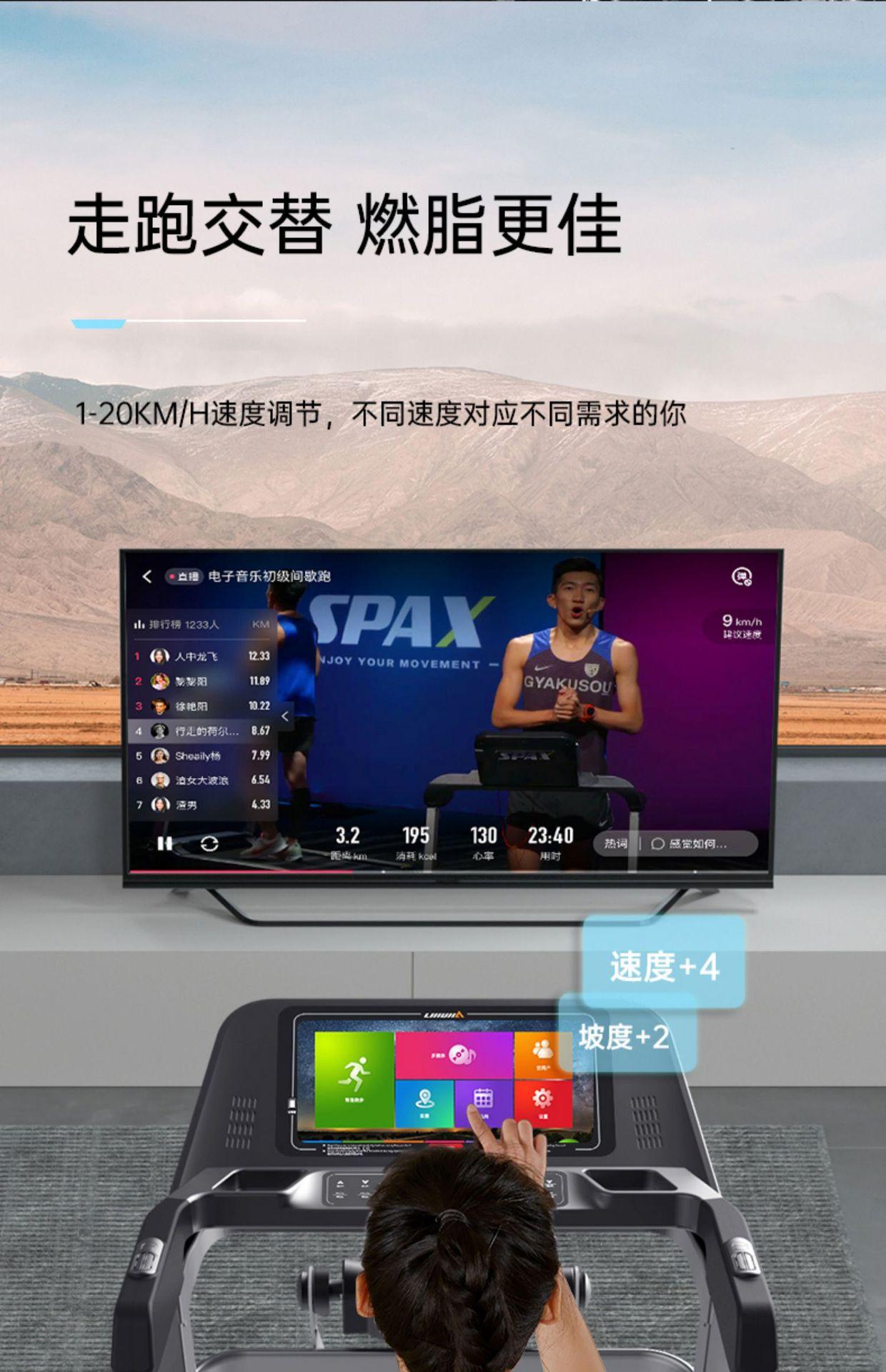 Esteira Elétrica Doméstica Grande Equipamento de Fitness com Inclinação Ajustável, Controle de Toque Wi-Fi, Tela Grande e Sensor Inteligente