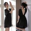 Nova camisola sexy de malha sexy europeia e americana, perspectiva sexy, verão com almofada no peito, suporte de aço, fabricantes de pijamas femininos, atacado