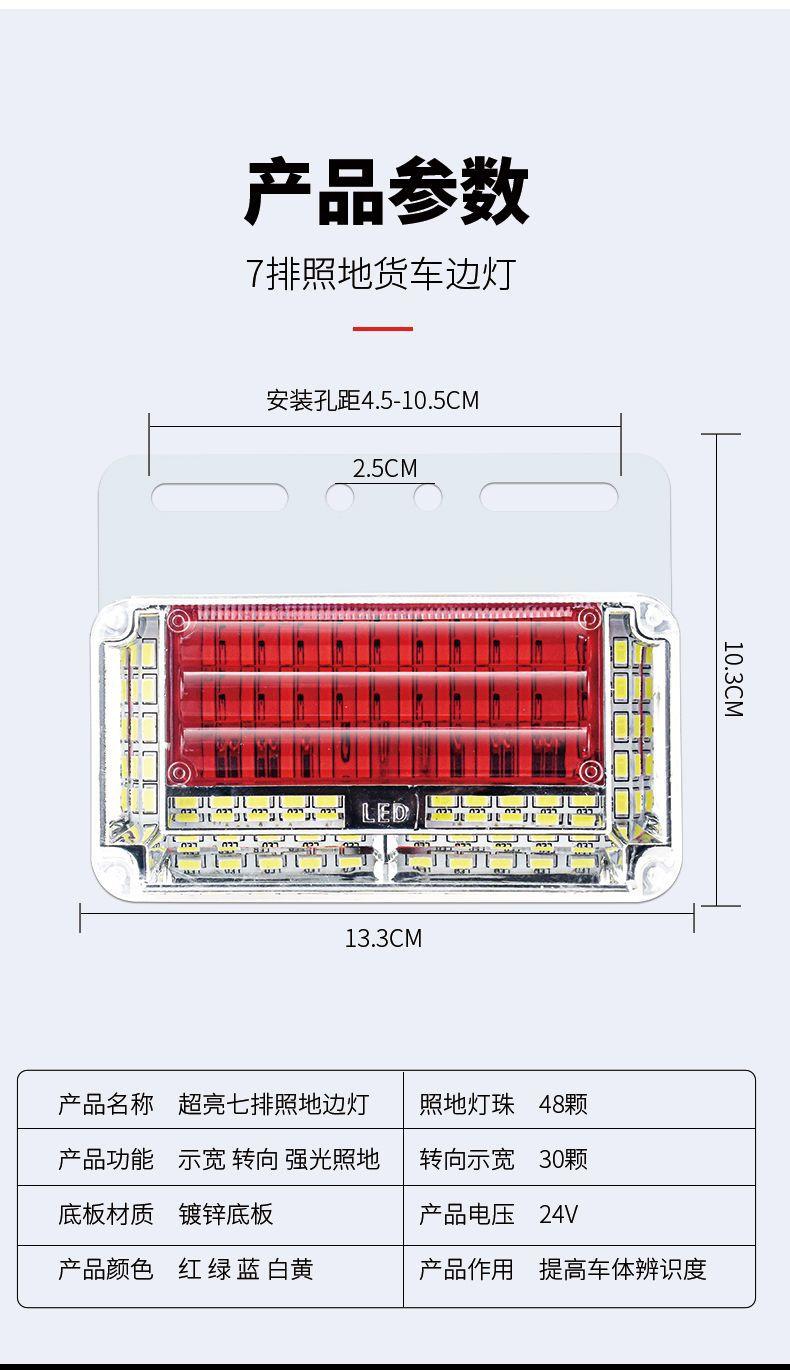 Reboque novo led de sete linhas de iluminação luz lateral do caminhão 24v à prova d'água super brilhante luz forte multifuncional luz da cintura lateral