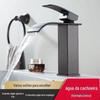 Torneira Cascata Núcleo Cobre Preto Quente e Frio Bacia de Bancada Lavatório Banheiro Gabinete de Banheiro Furo Único Bica de Torneira