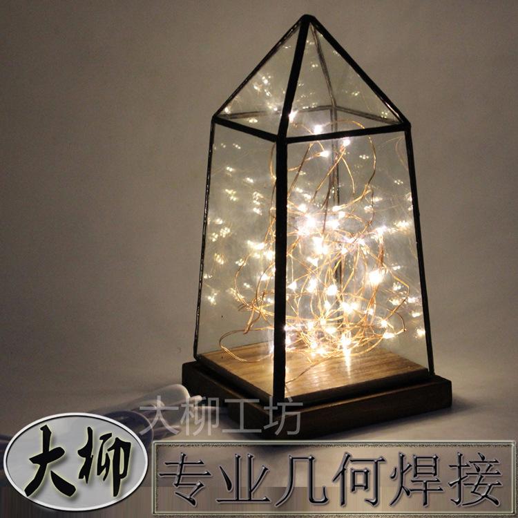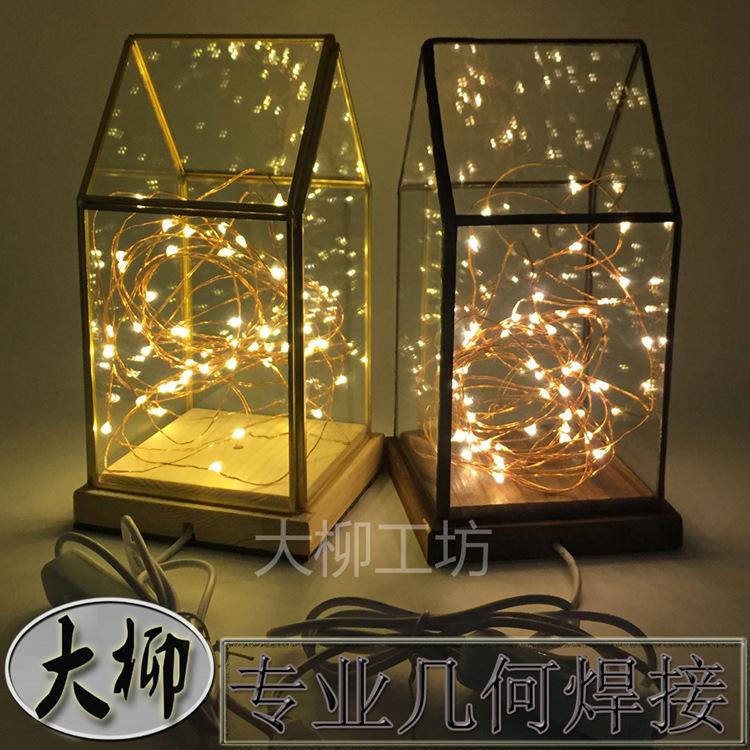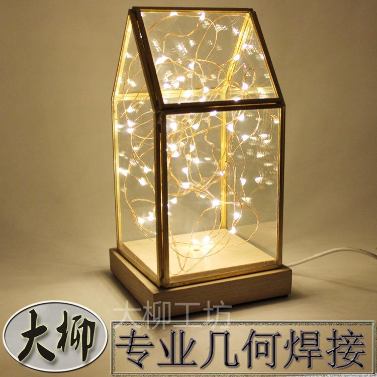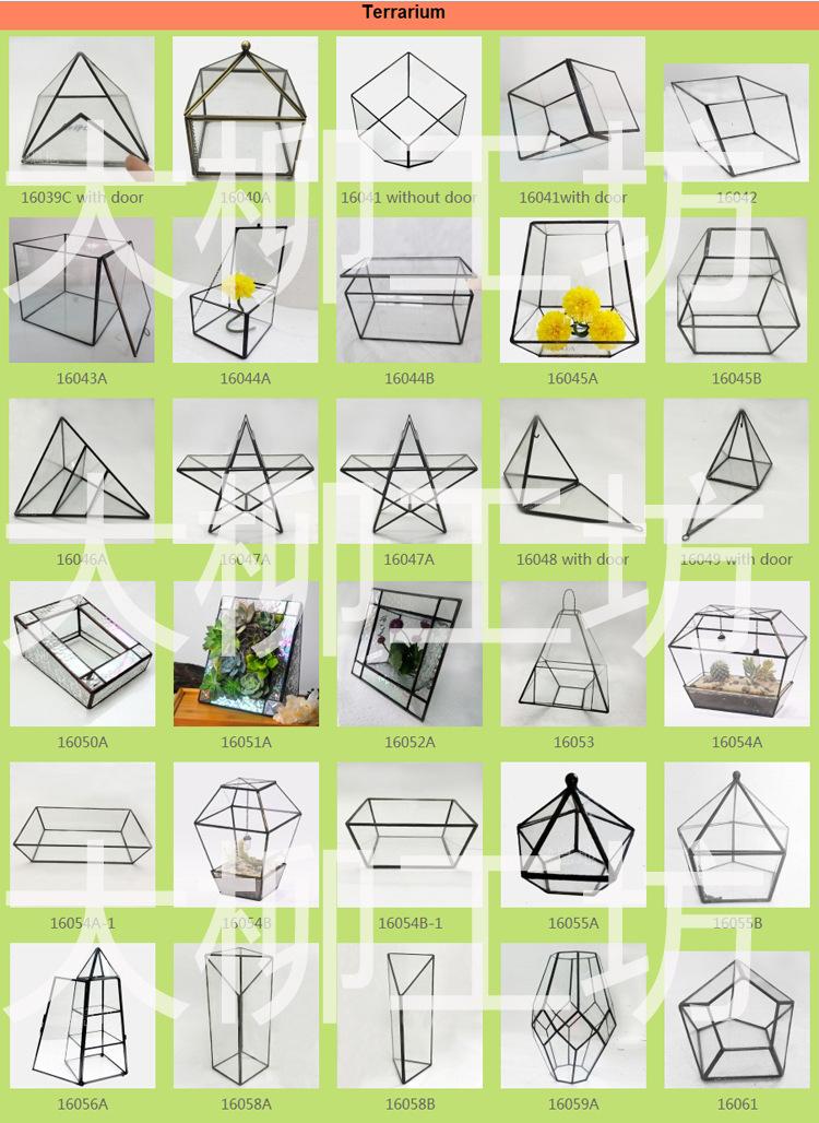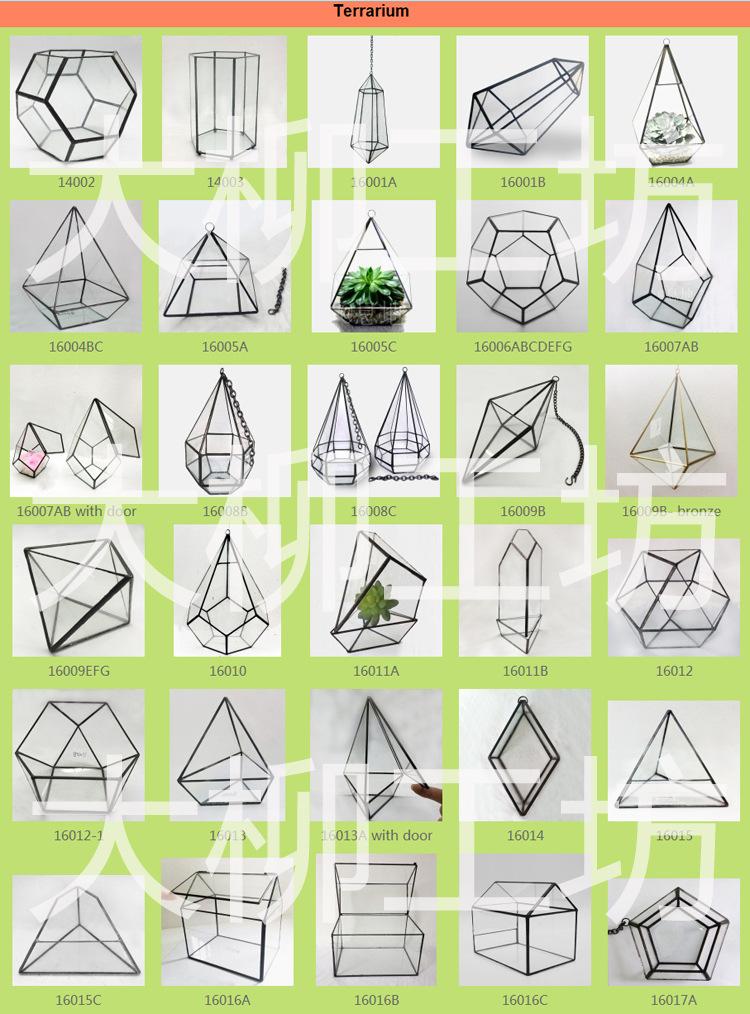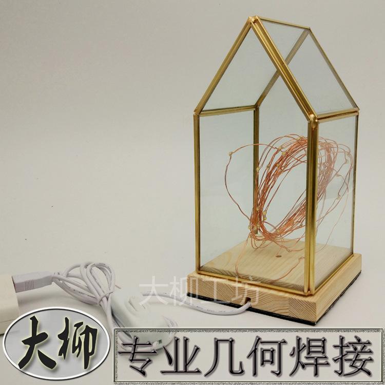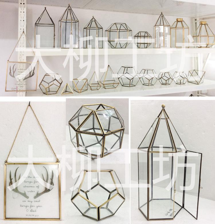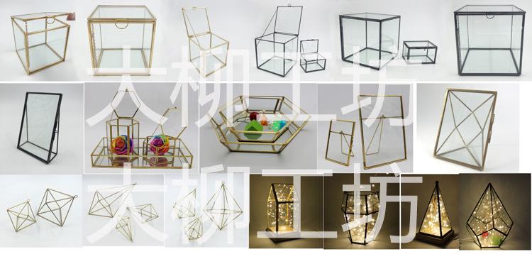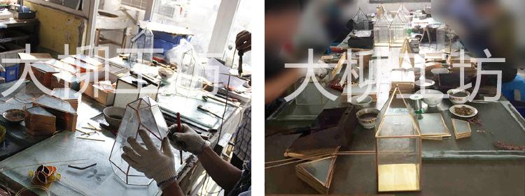 Principalmente envolvido em estufas de vidro geométricas, molduras de cobre para fotos, suportes de abacaxi de cobre (sem vidro), lanternas de tira de cobre, abajures geométricos