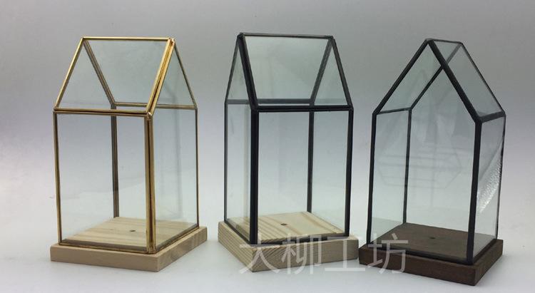Foco de produção em terrário de vidro, moldura de latão para fotos, suporte de latão para plantas aéreas (sem vidro), lanterna de latão, abajur de vidro.