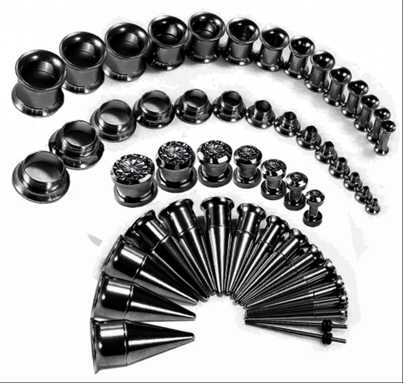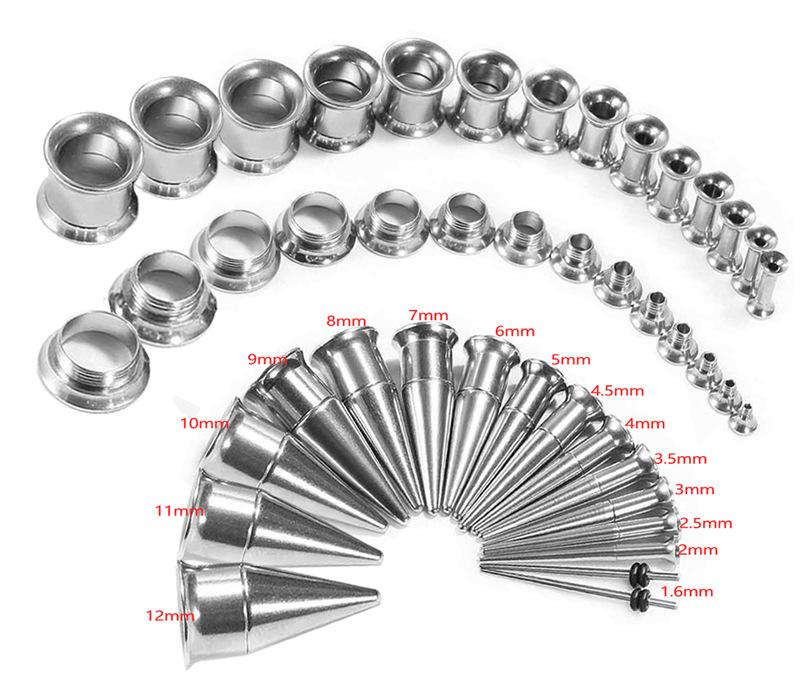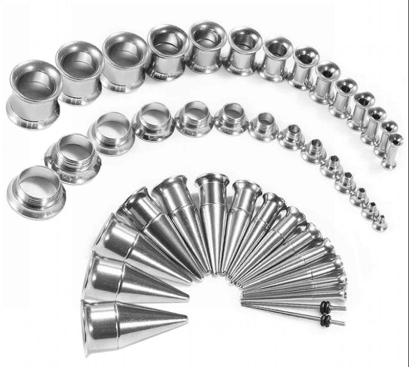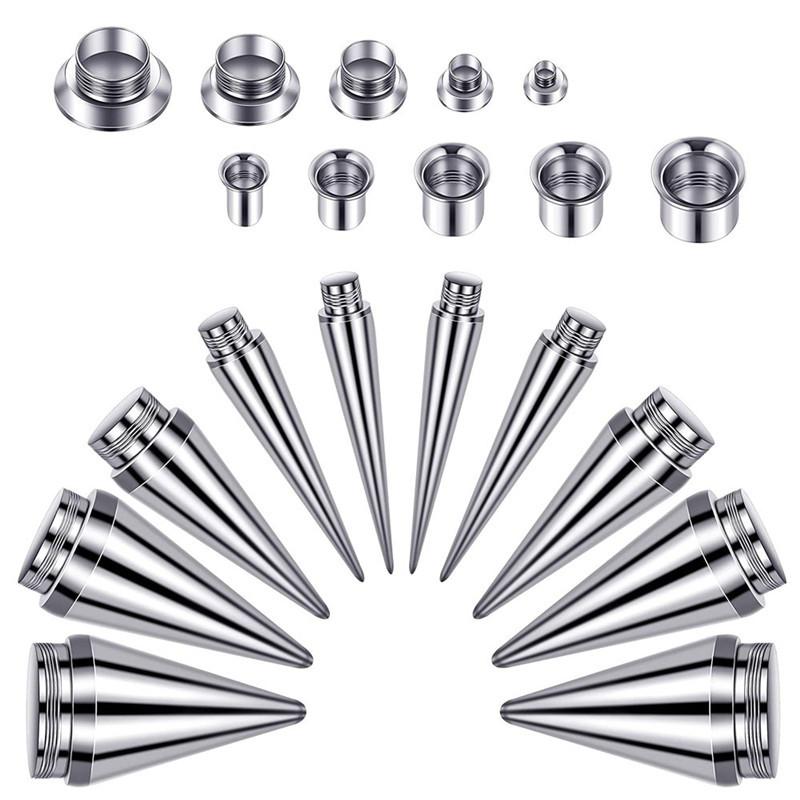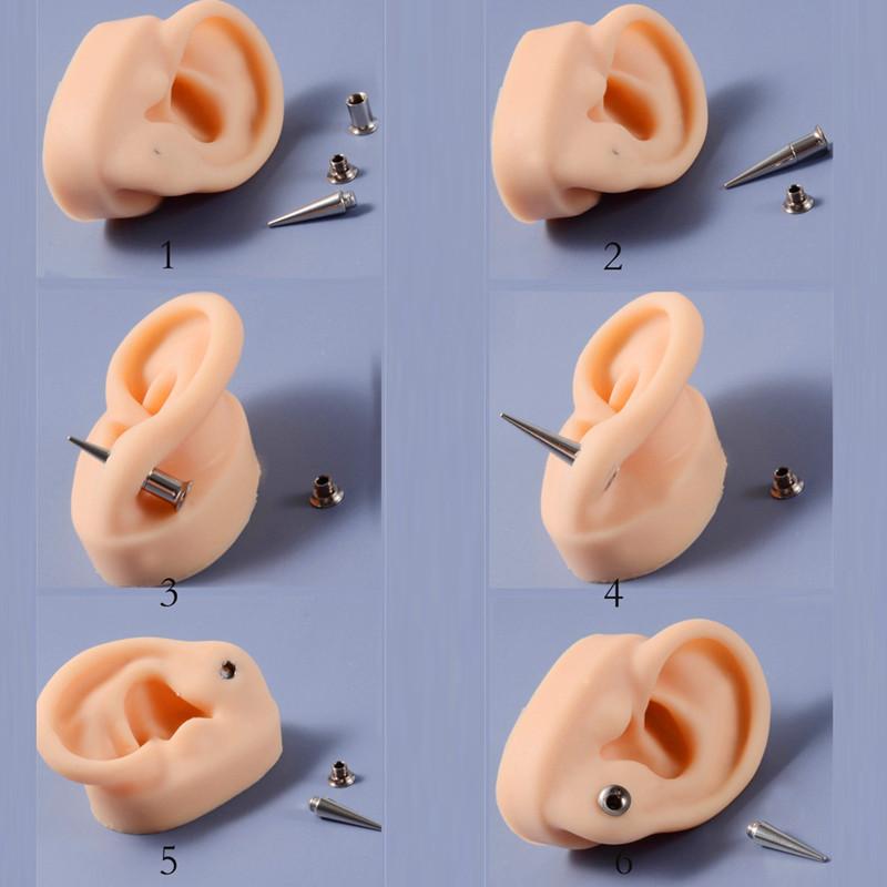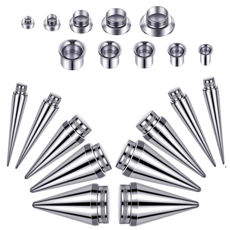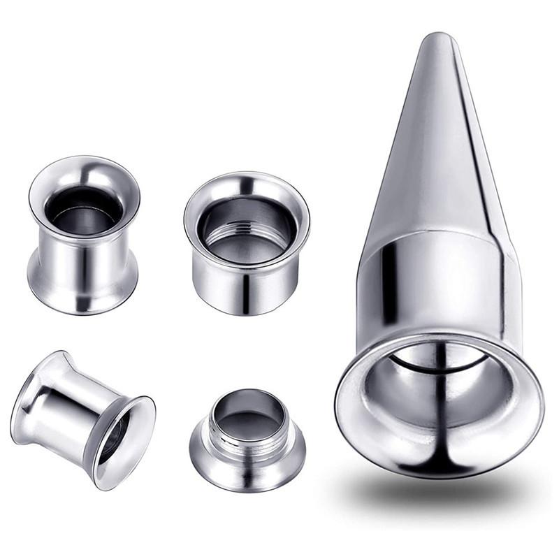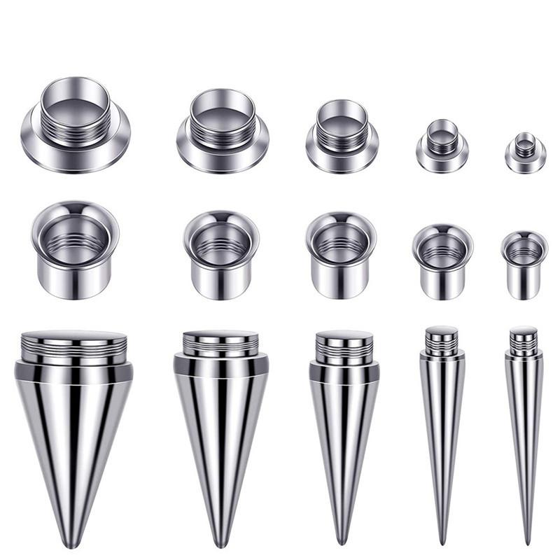 Conjunto Aço Inoxidável Aurícula Dois em Um Ferramenta de Piercing e Expansão Aço Inoxidável Cone Pontiagudo Chifre Expansão de Orelha e Alargador de Furo de Orelha