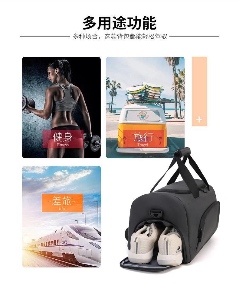 Bolsa de Ginástica Resistente à Água, Bolsa de Viagem com Compartimento para Sapatos Independente, Mochila Esportiva com Separação Seco e Molhado, Logotipo Personalizável, Acessório de Viagem da Moda