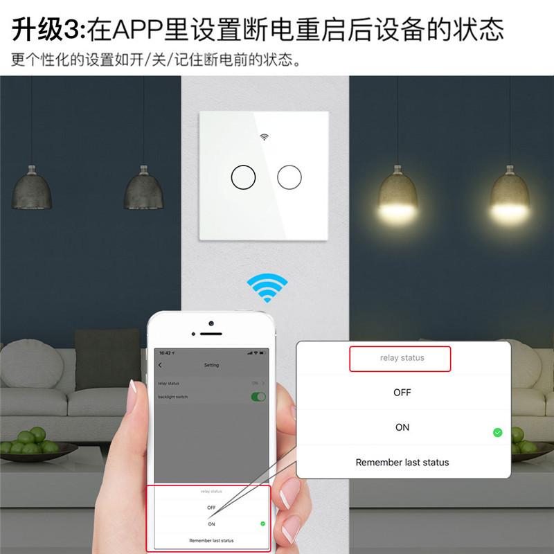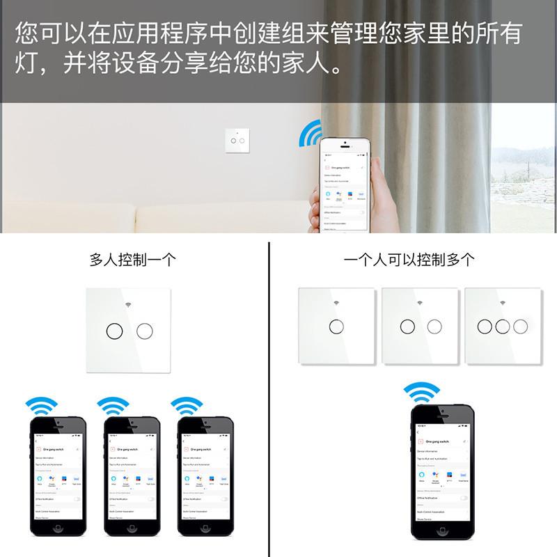 Interruptor inteligente de controle de luz WiFi, aplicativo de casa inteligente com grafite, controle remoto, fiação de fogo zero, interruptor de parede sensível ao toque