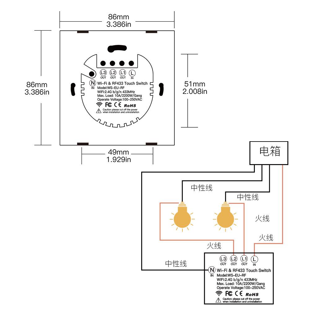 1-way white rf radio frequency optional sticker (used with wifi switch)
