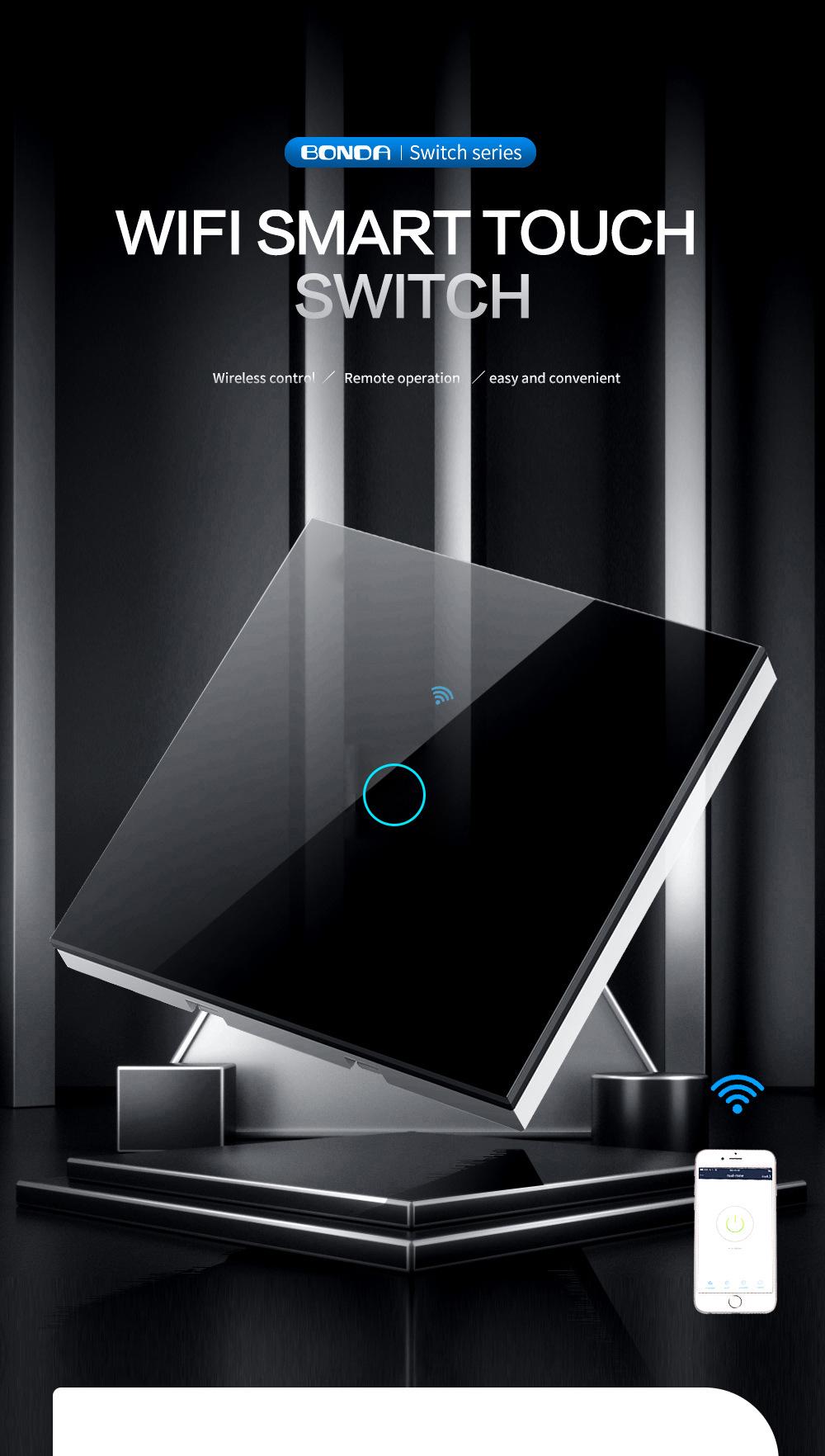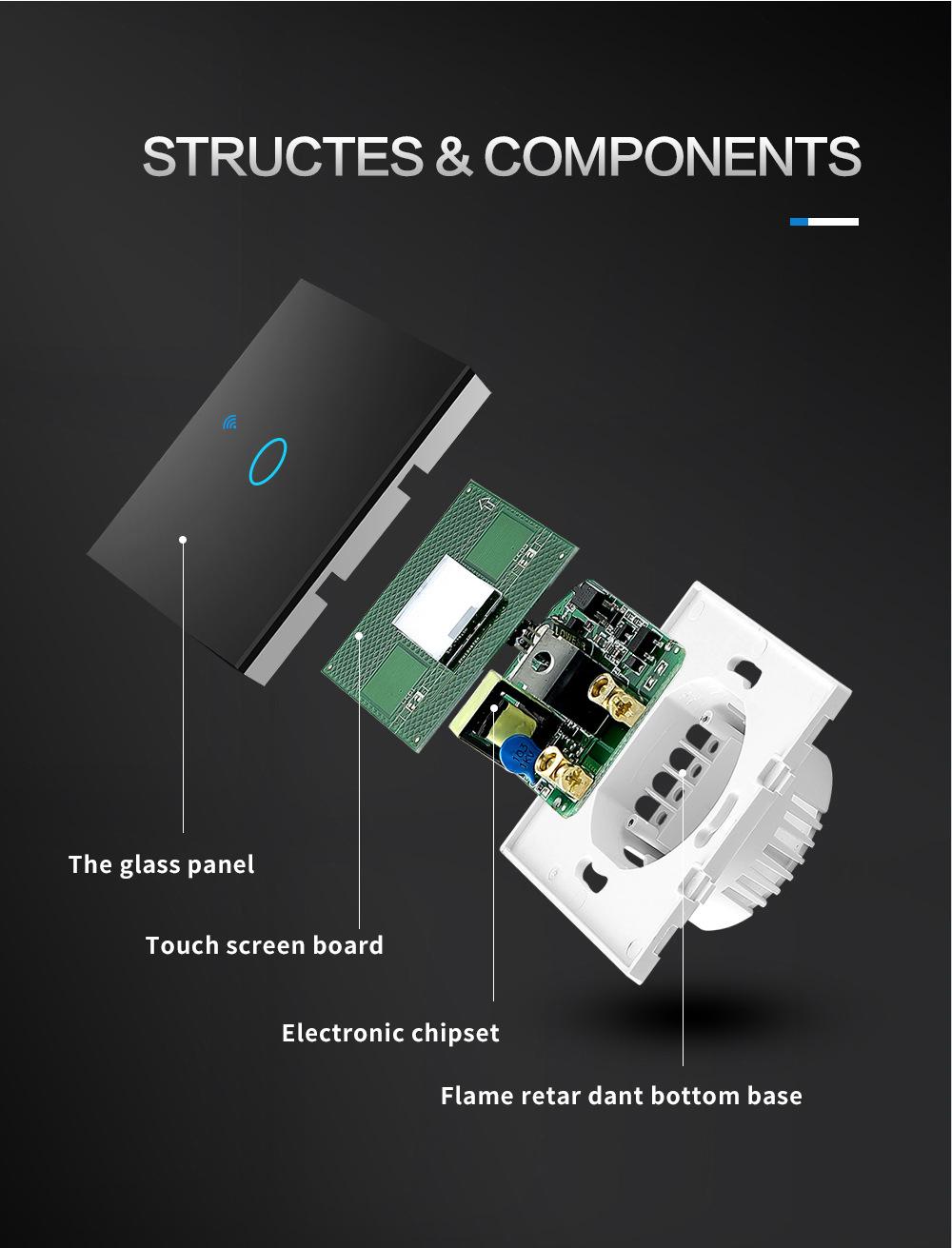 Interruptor Inteligente de Toque Simples Fio Único Wifi Tuya Smart Fio Zero Neutro Europeu Aplicativo Voz Temporizador Entrega Expressa SF