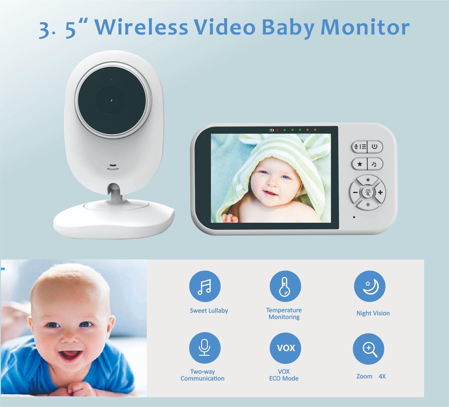 Monitor de bebê LCD HD de 3,5 polegadas, monitoramento sem fio, interfone bidirecional, visão noturna, monitor de bebê infravermelho