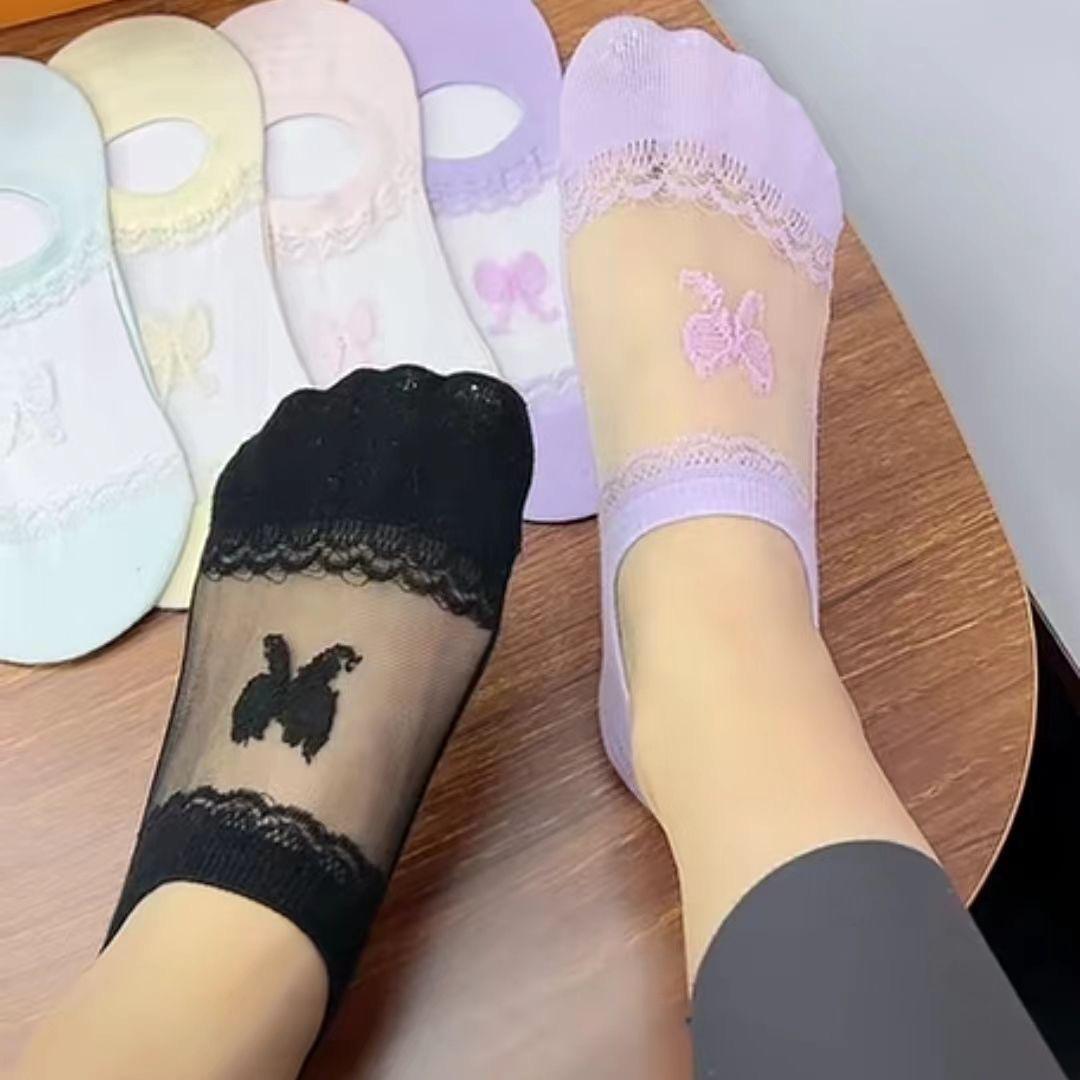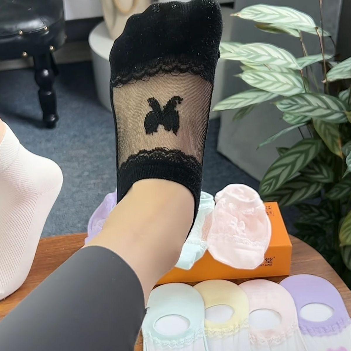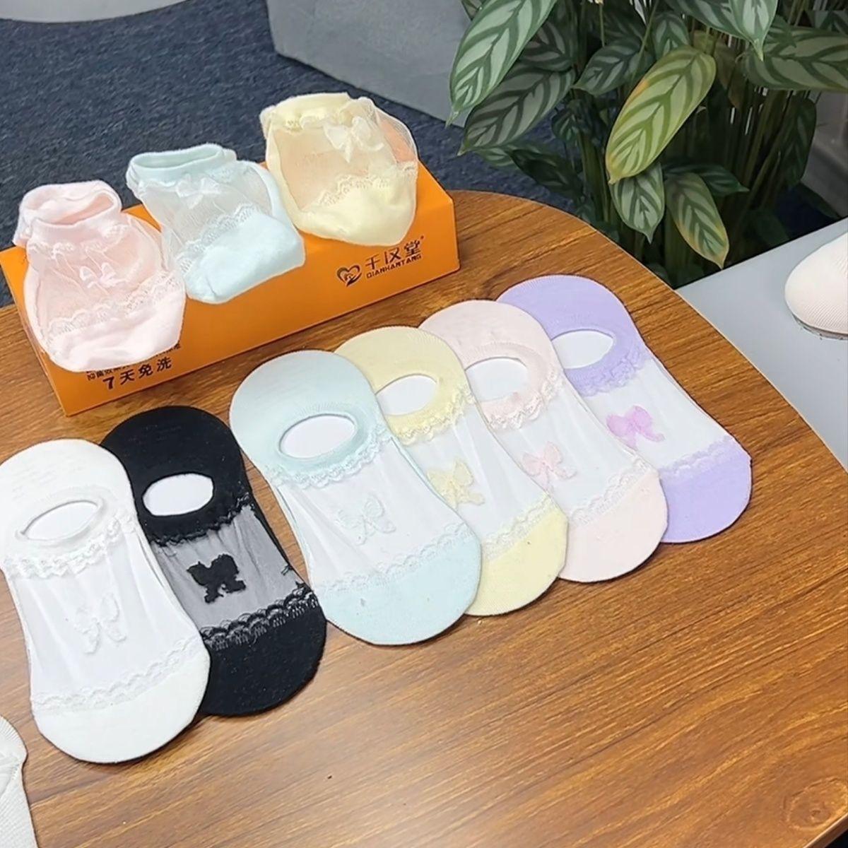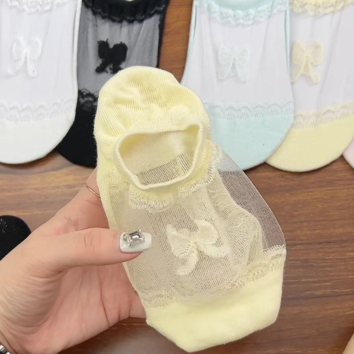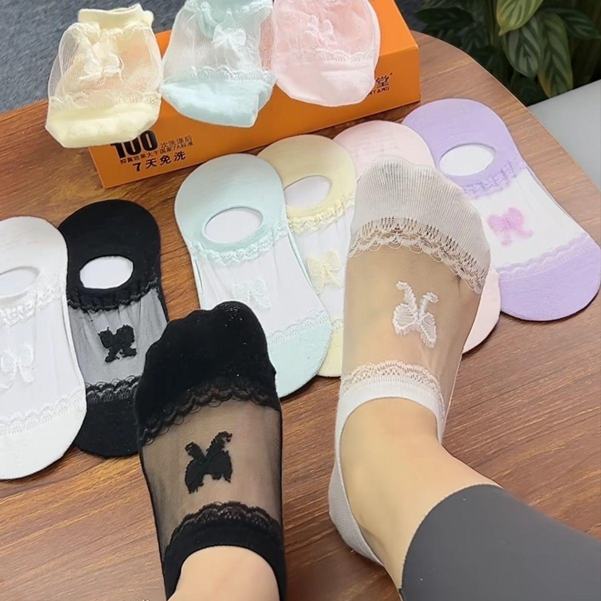 Meias de barco antiderrapantes invisíveis Meias femininas sem queda Salto Arco Meias de seda de vidro Verão Cor sólida Fundo Meias curtas absorventes de suor Finas