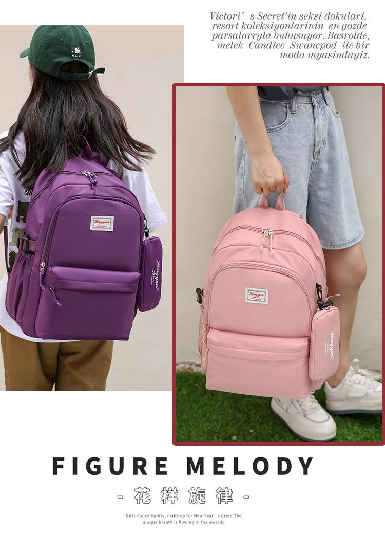 Mochila feminina 2023 nova mochila casual simples grande capacidade bolsa de viagem cor sólida mochila escolar para estudantes do ensino médio