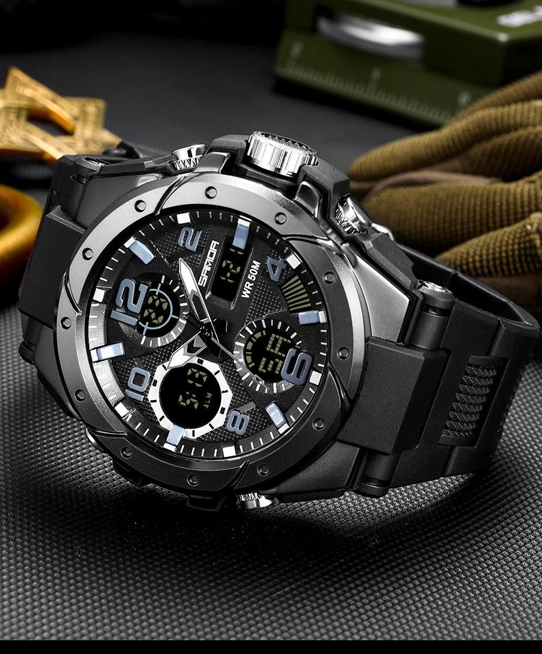 Compre Relógio eletrônico masculino à prova d'água esportivo estudantes do ensino médio tendência preto tecnologia multifuncional LED relógio luminoso no atacado no Joom.pro