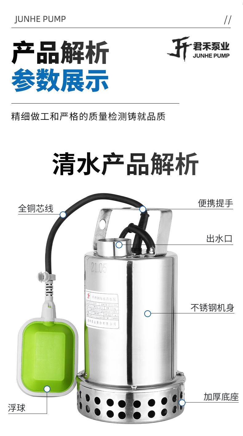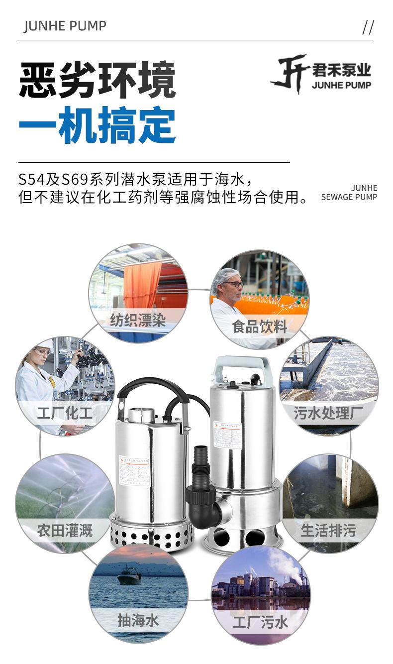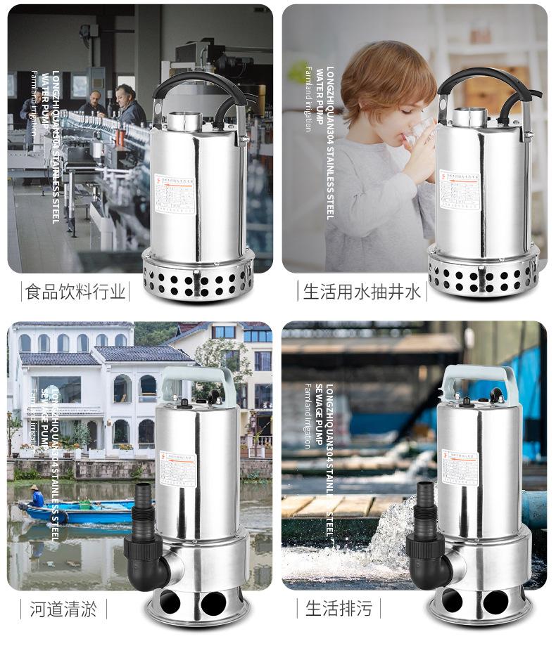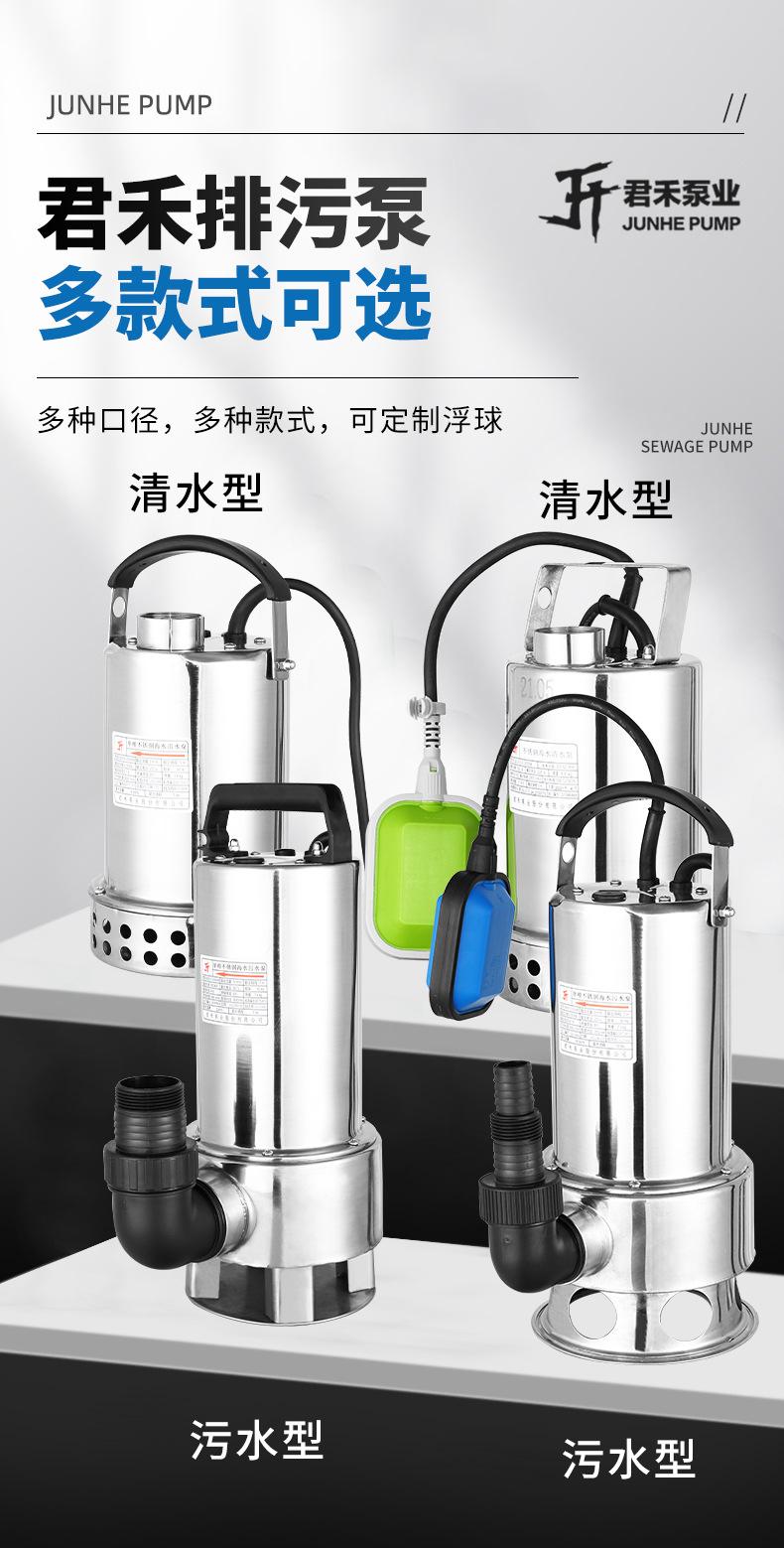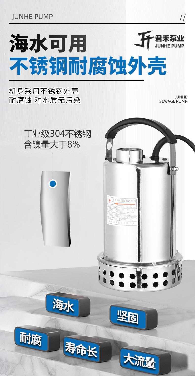 Bomba Submersível Doméstica Junhe de Aço Inoxidável 304 Bomba de Água Grande Vazão Bomba de Esgoto Fiação de Cobre Bombeamento Drenagem de Porão