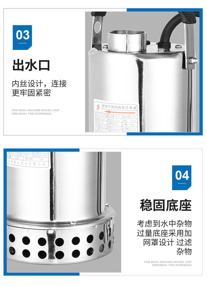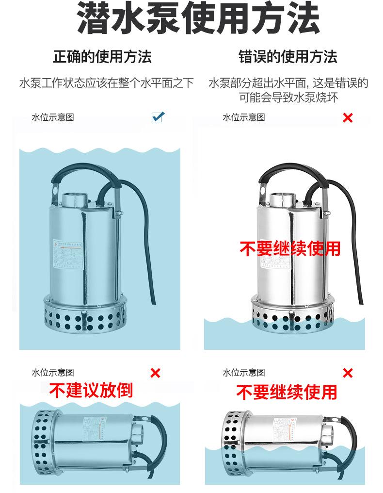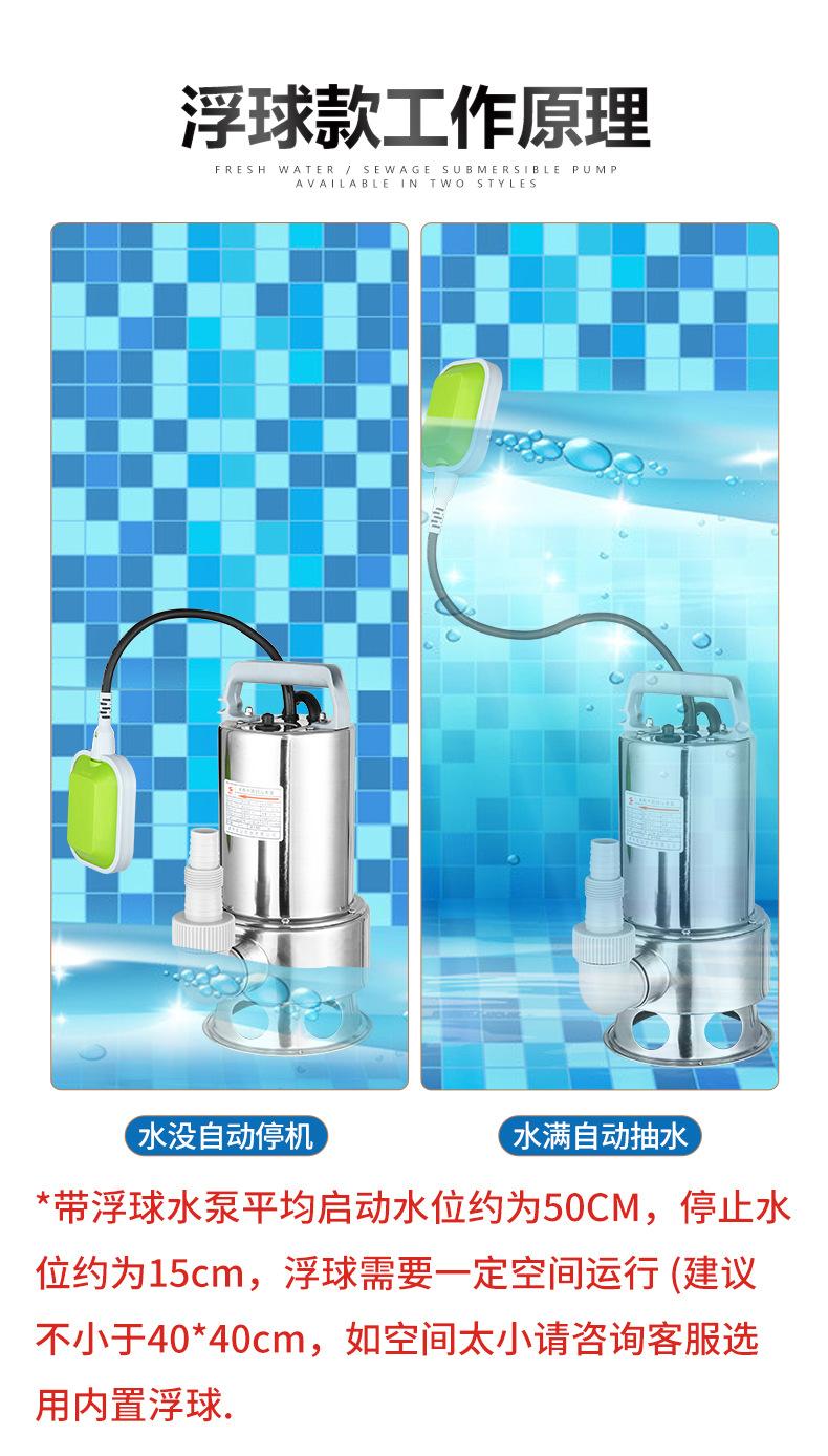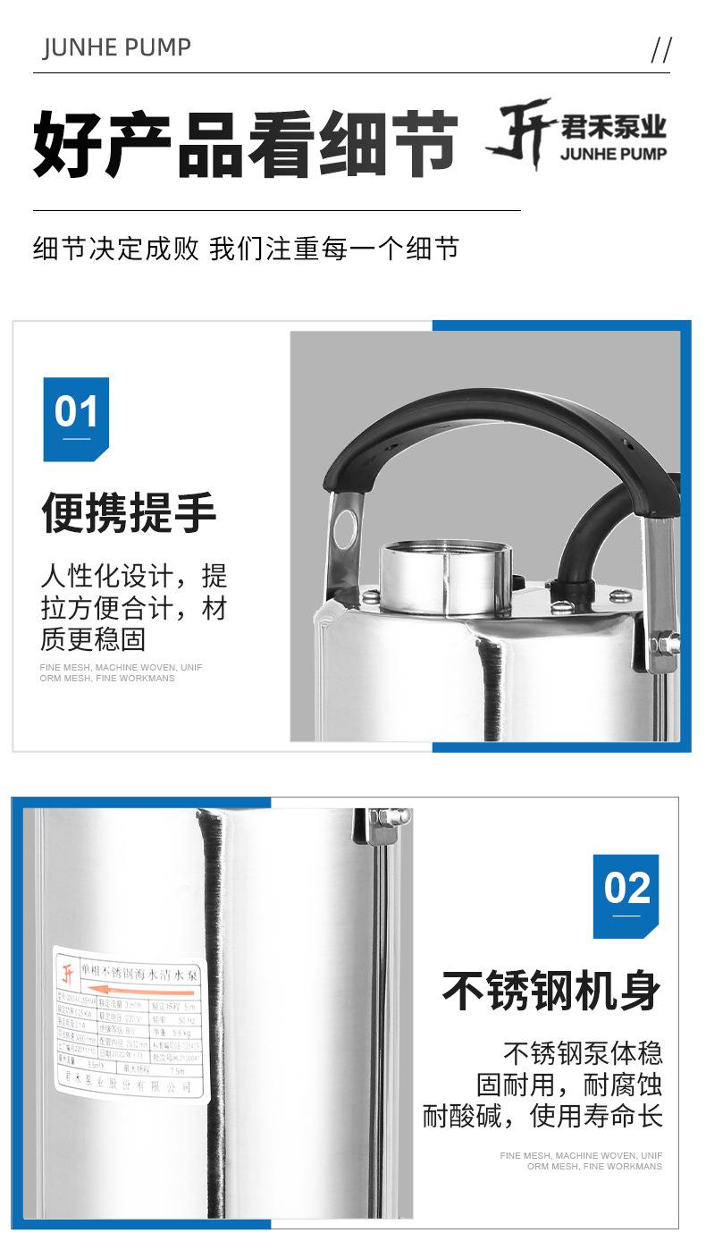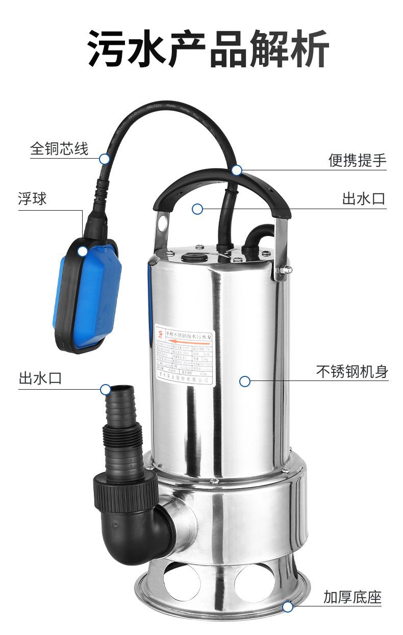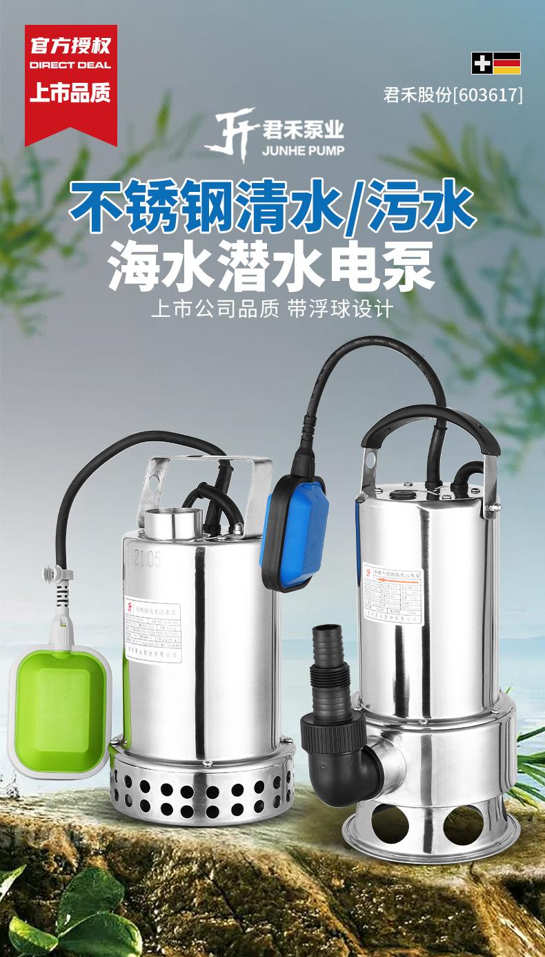 Bomba Submersível Doméstica Junhe de Aço Inoxidável 304 Bomba de Água Grande Vazão Bomba de Esgoto Fiação de Cobre Bombeamento Drenagem de Porão